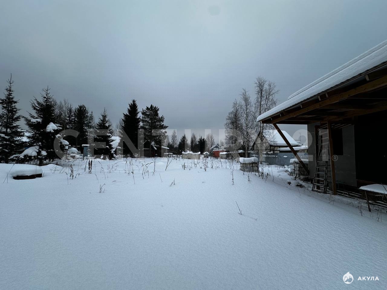Участок 11.2 сотки, раскорчеван и выровнен. Сохранили красивые ели и березы для атмосферы загородного отдыха. С лицевой стороны установлен забор, по границам с соседями уже вкручены сваи — основа для ограждения готова.