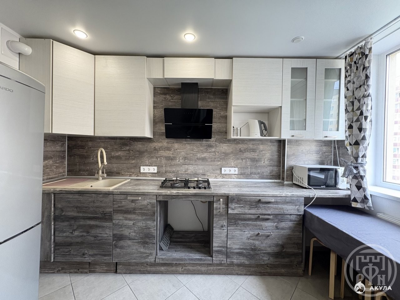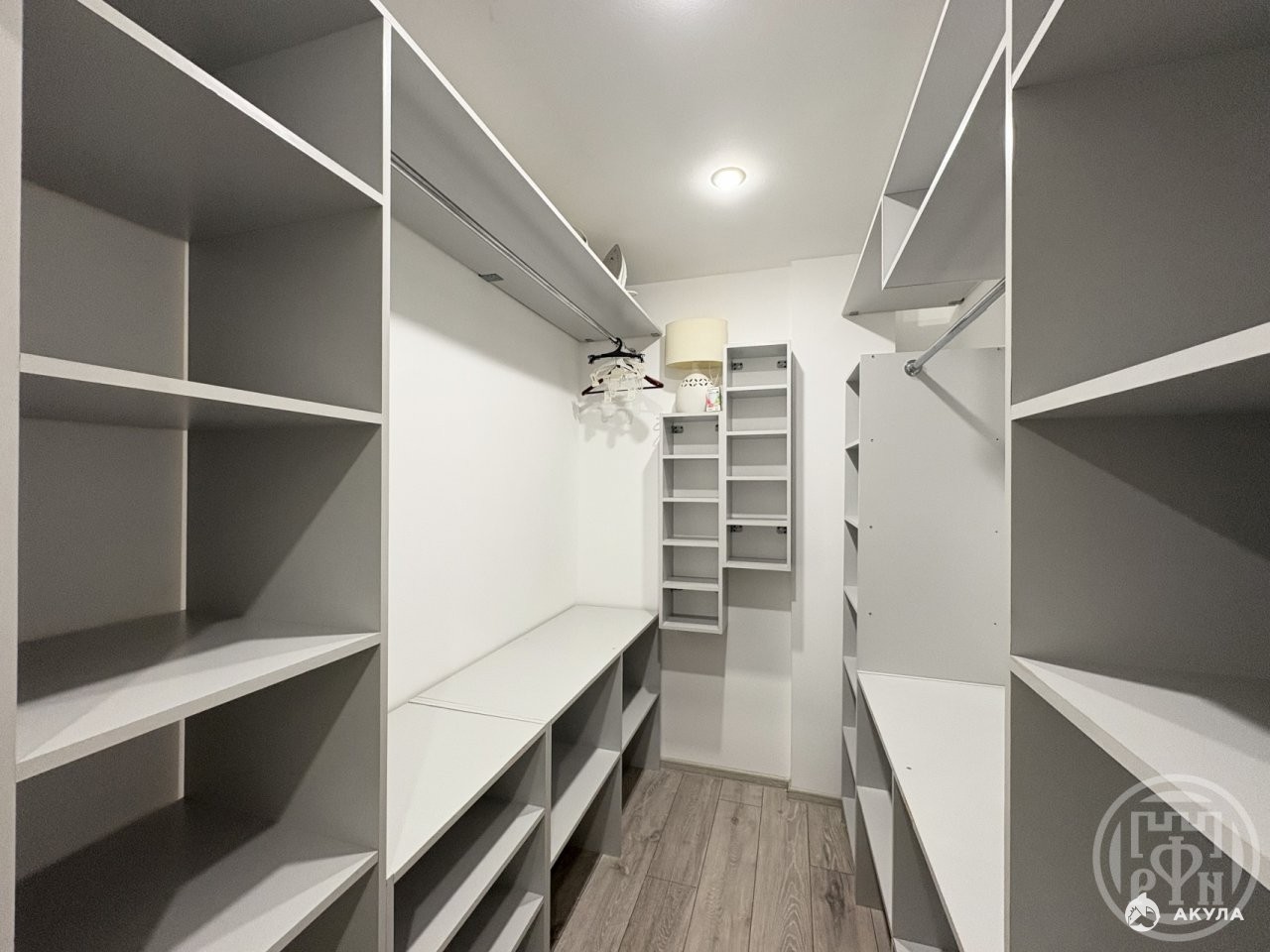 По мебели: кухонный гарнитур, стол, стулья, кровать. Отдельная гардеробная.