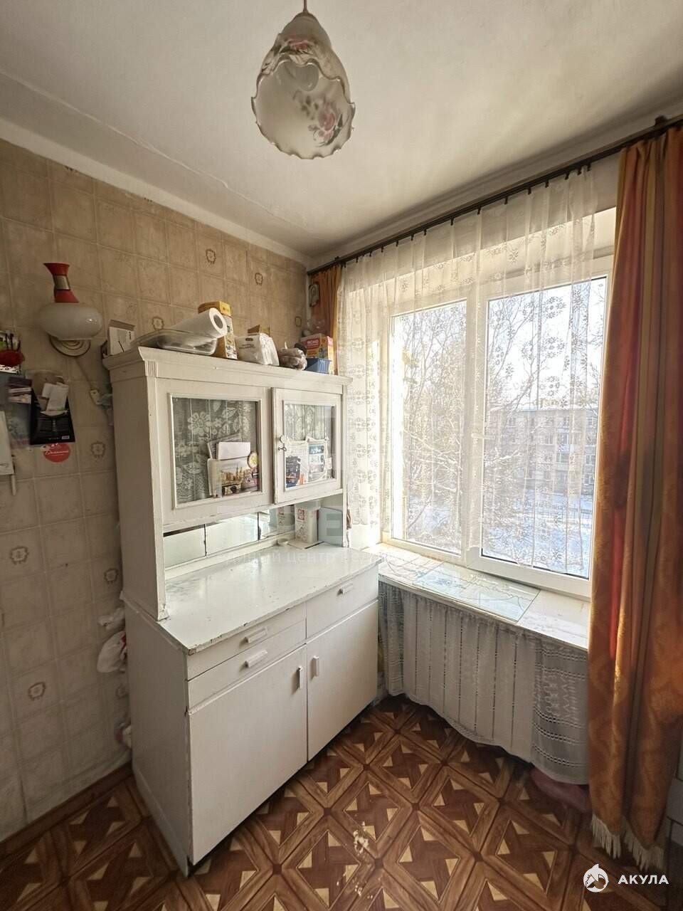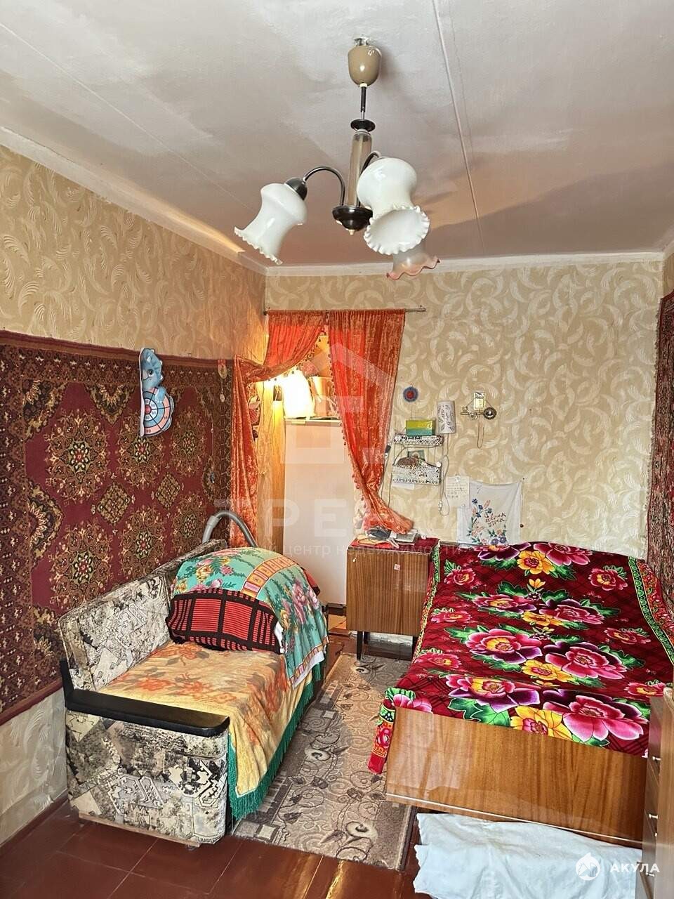 Квартира расположена на четвёртом этаже четырёхэтажного кирпичного дома 1963 года постройки. Комнаты смежные при желании можно разделить, общая площадь составляет 43, 1 кв. м, из которых 28, 1 кв. м - жилая площадь, 5, 2 кв. м - кухня. Площадь комнат - 11, 6 кв. м и 16, 5 кв. м. В квартире есть балкон, и ложа с другой стороны окна выходят во двор. До станции метро "Купчино" на автомобиле можно добраться за 25 минут. До ж/д станции Павловск 10-15 минут пешком.