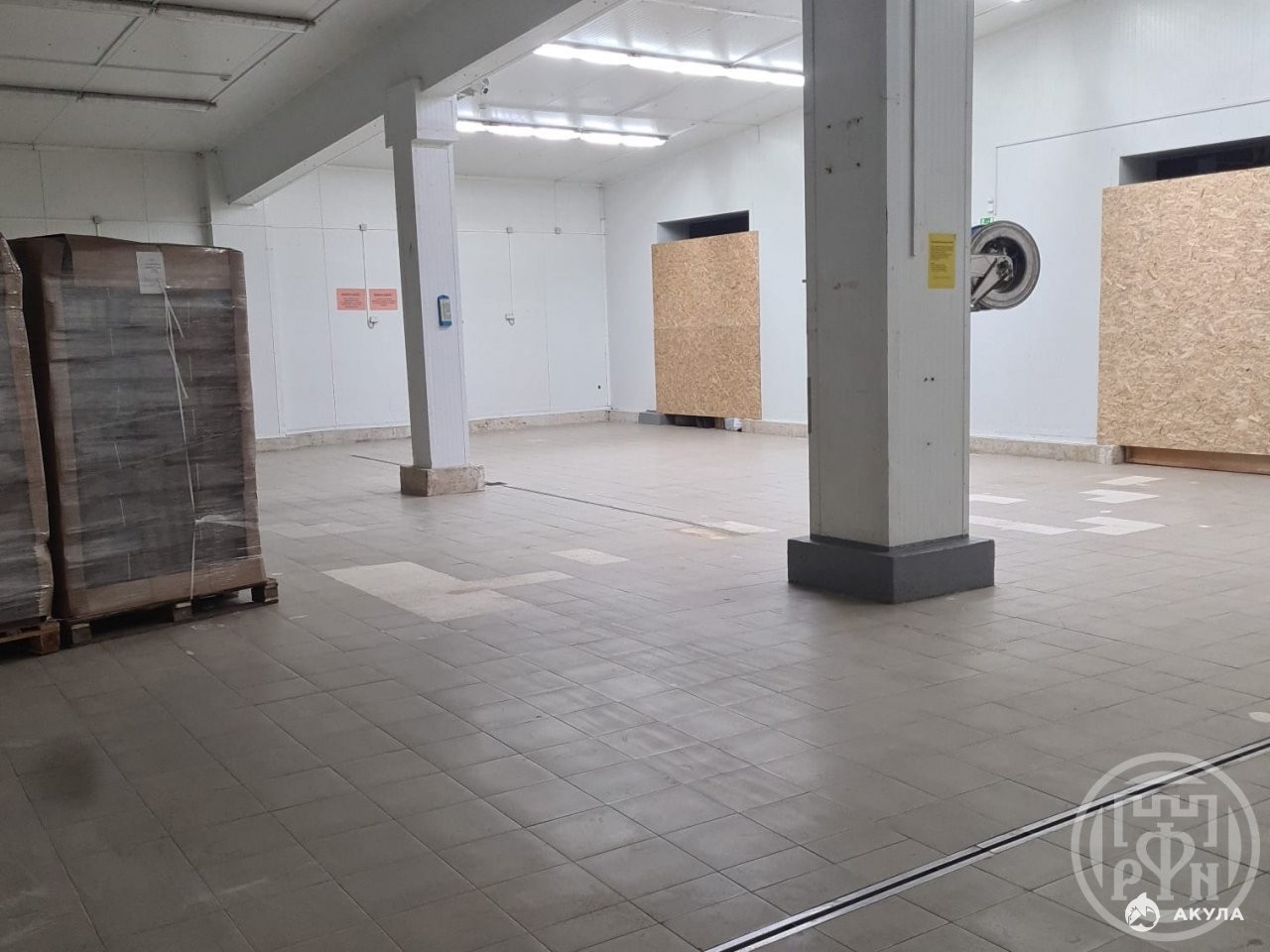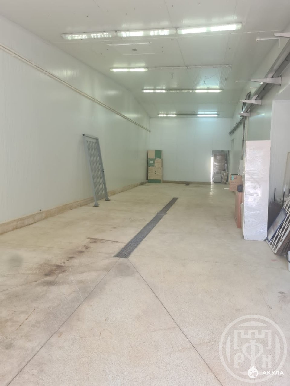 Конструкция железобетон, стены обшиты сэндвич-панелями. Пол мраморная крошка. Центральное отопление.