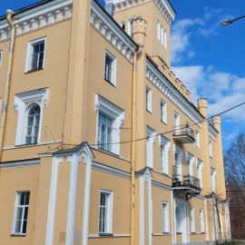 №330369 Петергоф, ул. Самсониевская, д.7. Дом памятник архитектуры построен в стиле -Эклектика, архитектор Шарлемань И.И. Здание известное , как `Городская полиция и пожарная часть`. Перекрытия в доме-кирпичные своды. В доме всего 15 квартир! Высота потолков в квартире 4м...