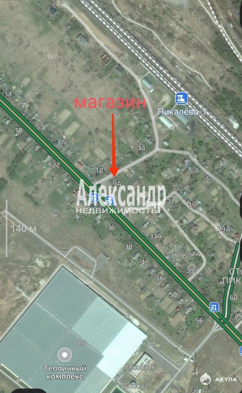 Оживленный перекресток, поворот к станции Пикалево 1( до станции 200 м), автобусные остановки в 2 стороны, 600 м до крупного тепличного комплекса, 8 км до ближайшего магазина.