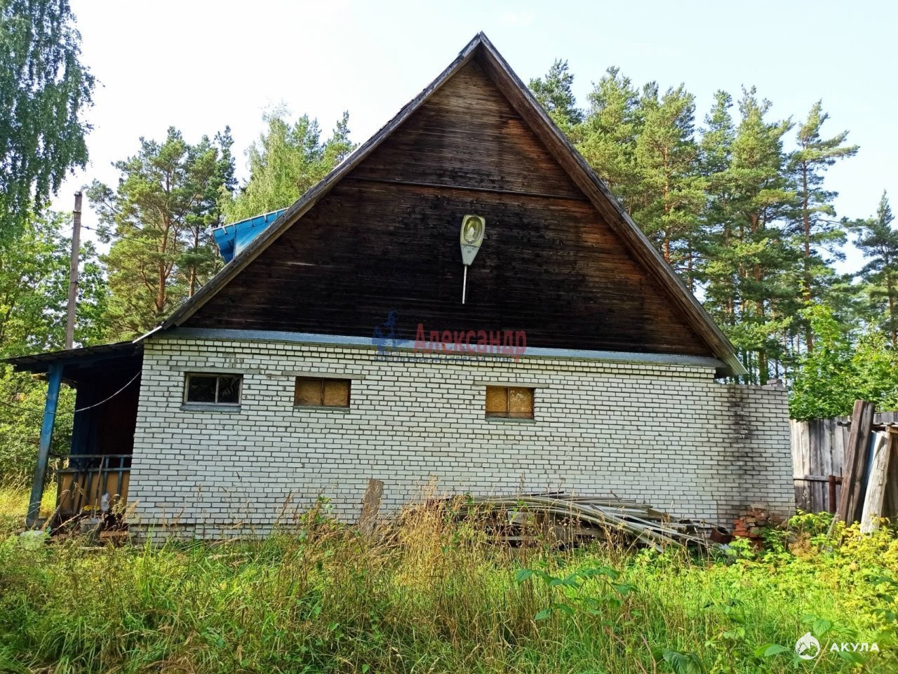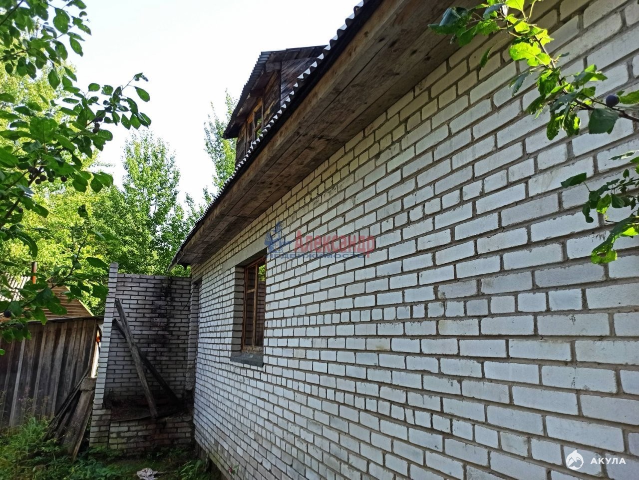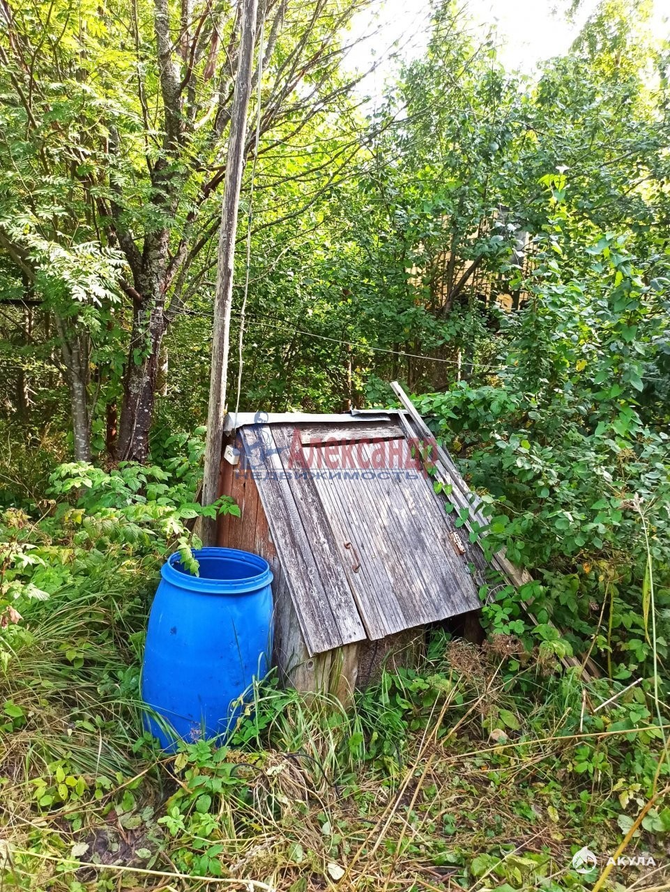 Огорожен, вокруг дома фруктовые деревья- яблони, сливы, есть небольшая банька, сарай, колодец.