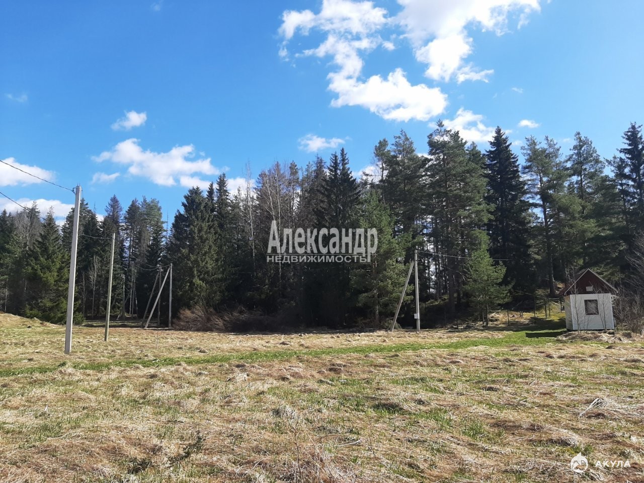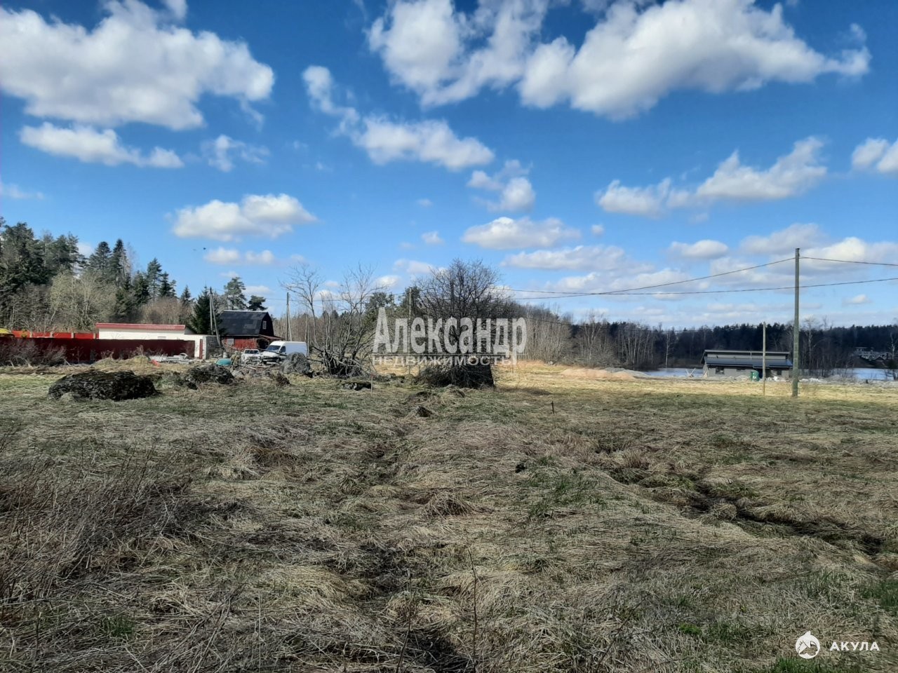 Участок находится на открытой большой поляне в 120 м от берега.