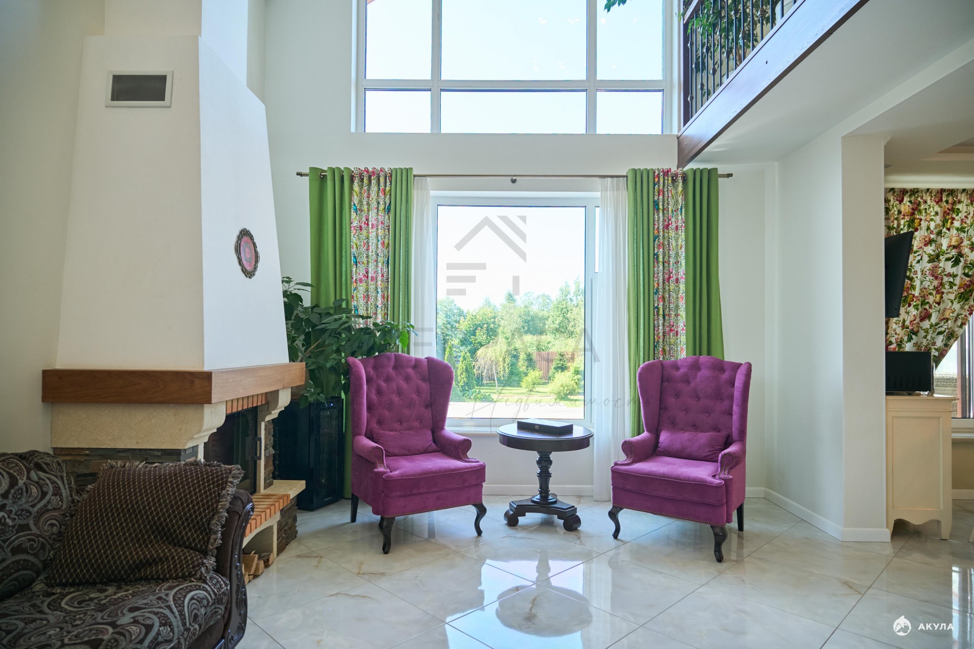 Камин, бассейн, зона барбекю, гараж на 2 автомобиля.
