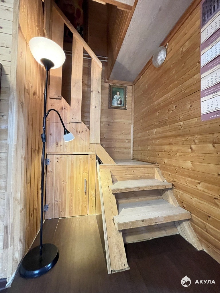 На первом этаже расположена прихожая 8м2, кухня-гостиная 18м2, санузел совмещен, в санузле выделена постирочная. Под деревянной лестницей на второй этаж имеется небольшое место для хранения или «комната Гарри Поттера»:).