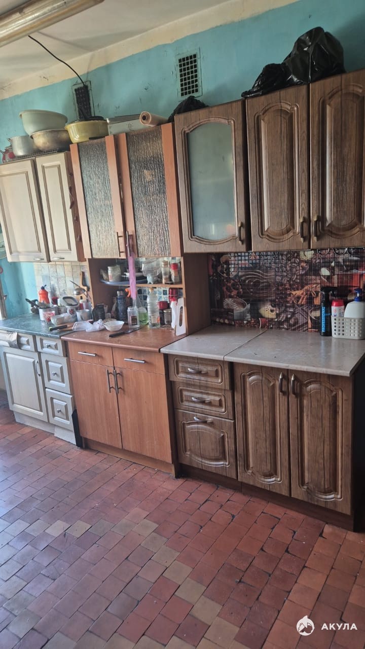 Большая общая кухня, существенное преимущество в том, что имеется свое место с кухонным гарнитуром. Раздельный санузел включает: два туалета, ванную и душ на 8 комнат, из которых в двух комнатах не проживают.