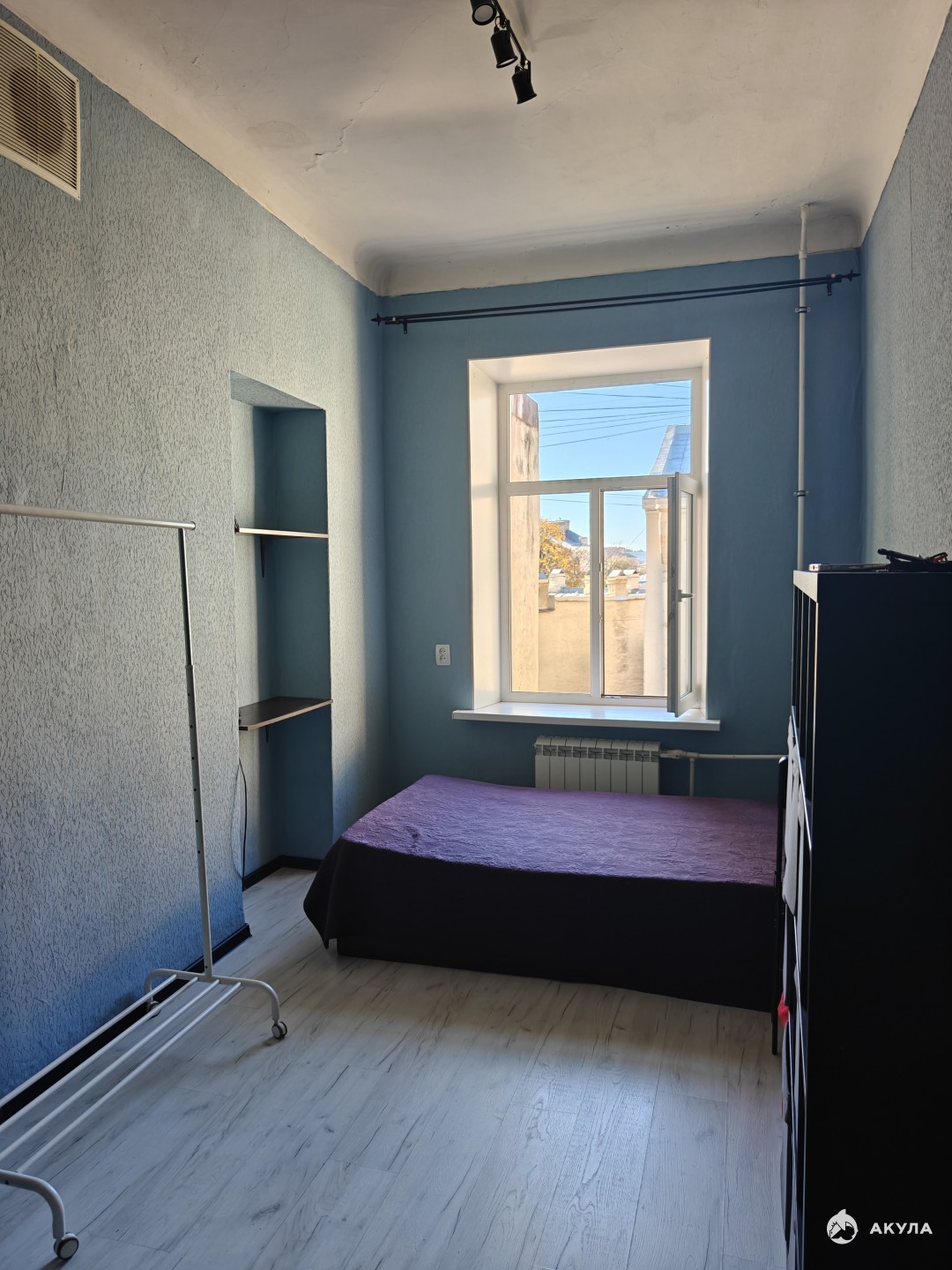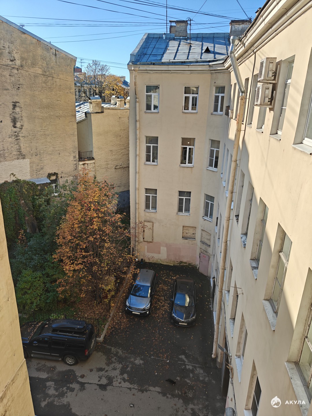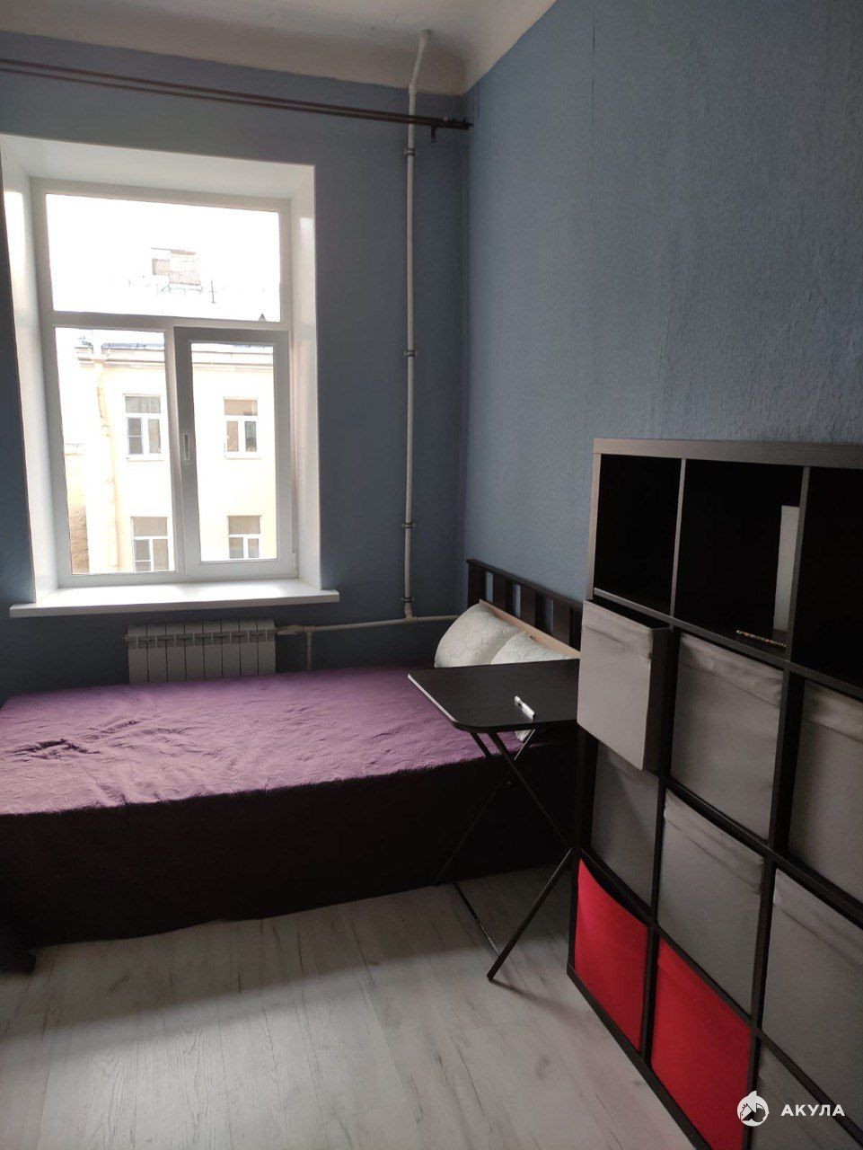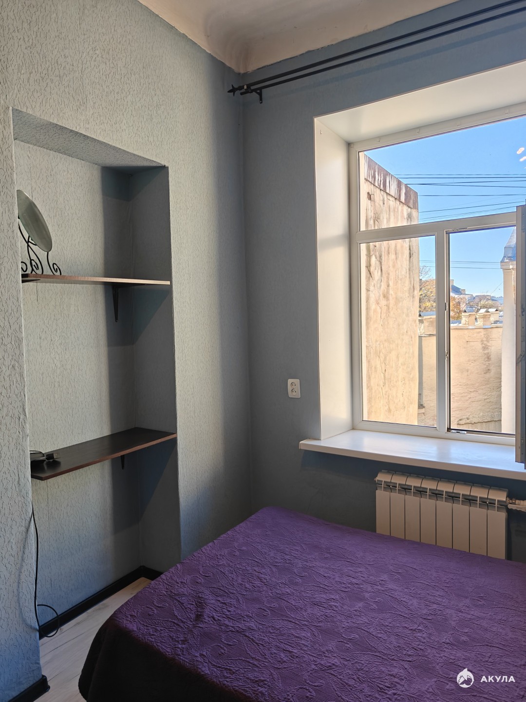 Окно комнаты выходит в тихий двор.