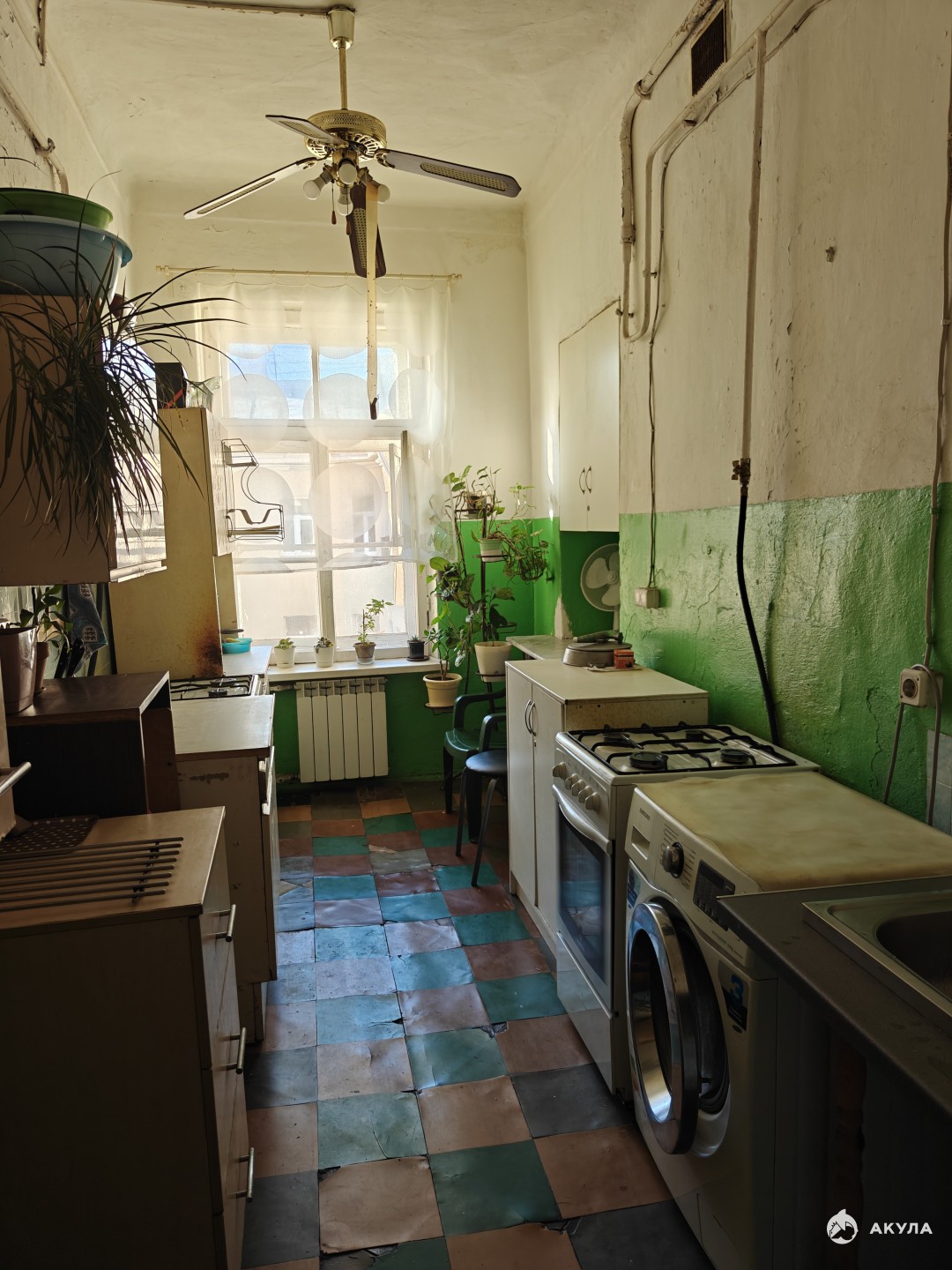 В комнате выполнен ремонт, установлен стеклопакет, набор необходимой мебели остаётся , небольшой стильный холодильник, микроволновая печь, эл.чайник. Есть свое место на кухне, есть место для стиральной машины в ванной. Потолки 3, 3м.