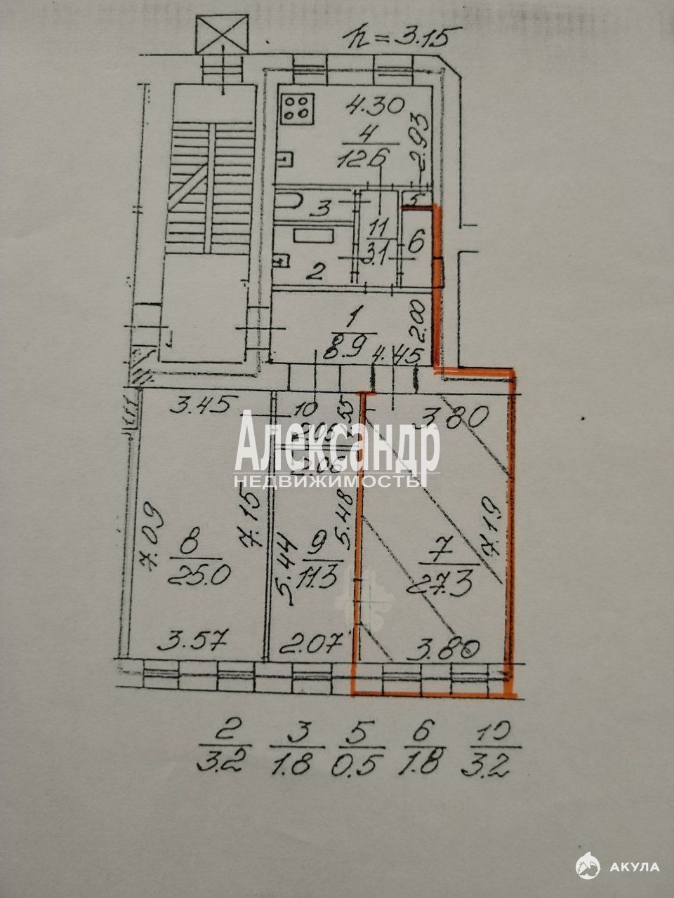 1700520 В пешей доступности от метро продаётся просторная (27, 3 м. кв.+3, 5 ) комната в 3-х комнатной квартире.