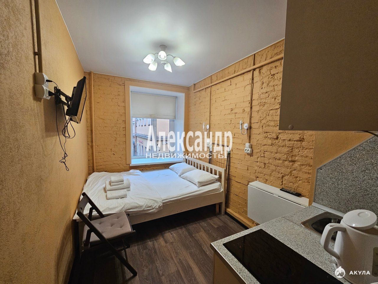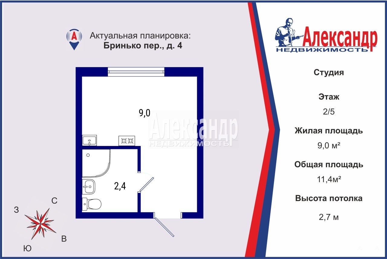 Площадь помещения 11, 4 кв.м., жилая 9, санузел 2, 4 (есть номер большей площадью), ремонт обновлен в апреле, окна выходят в тихий переулок.
