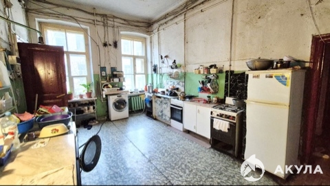 Комната: 24.1 м² (доля в праве собственности), изолированная, прямо напротив кухни 22.1 м2, в семикомнатной квартире, на 3-м этаже четырёх этажного дома.