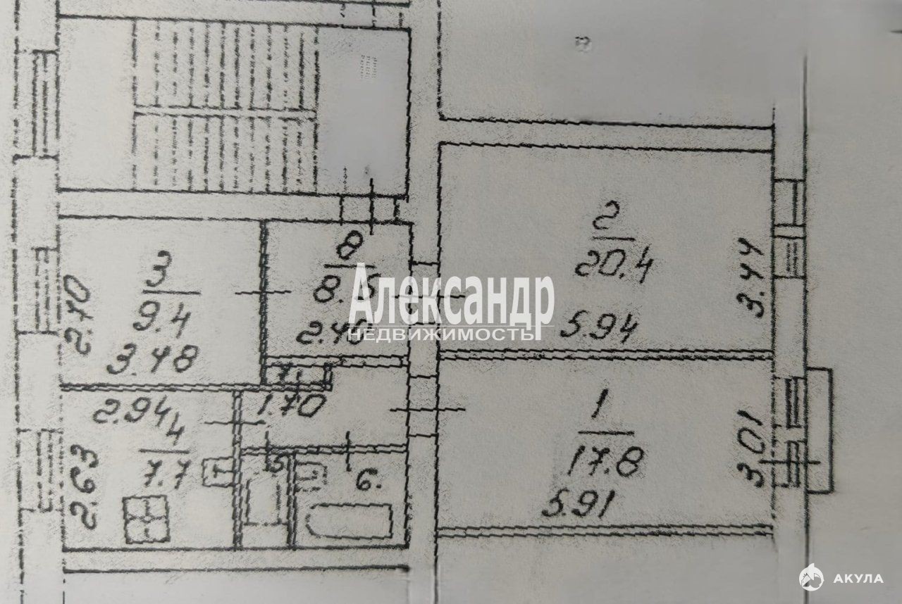 1705847 В прямой продаже шикарная комната 9.4 м.кв в квартире площадью 68, 3 м.кв, площадь кухни - 7.7 м.кв. ВСEГО 3 KОMНATЫ ! До ст. метро Площадь Ленина 10 минут пешком. Место шикарное, сам дом сталинской постройки 1957 года. Высота потолков 3, 03 м, чистая парадная, места общего пользования в хорошем состоянии, в квартире никто не проживает, одна комната стоит закрытая, вторая выставлена на продажу. В комнате пластиковое окно, новый радиатор отопления, на полу ламинат.