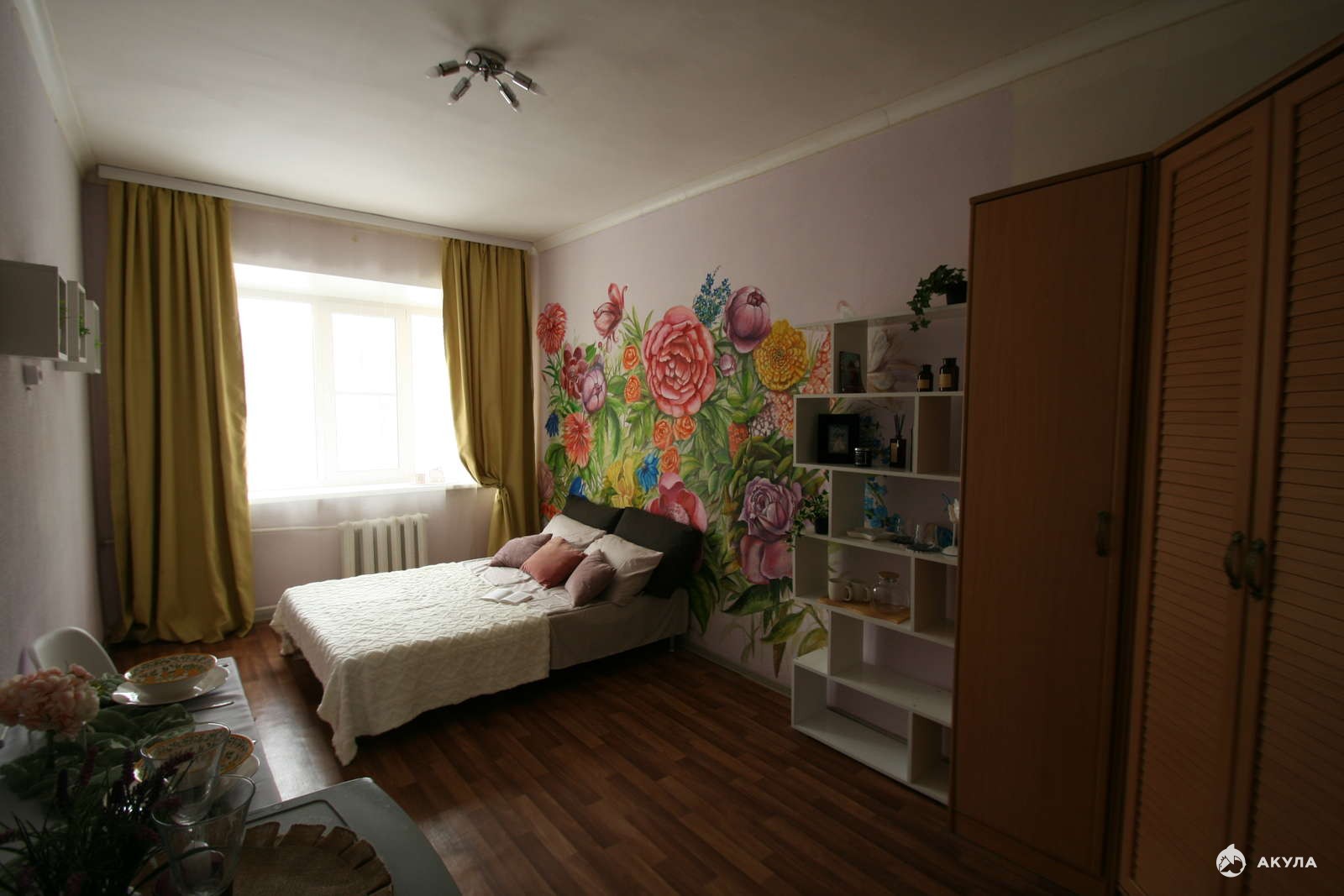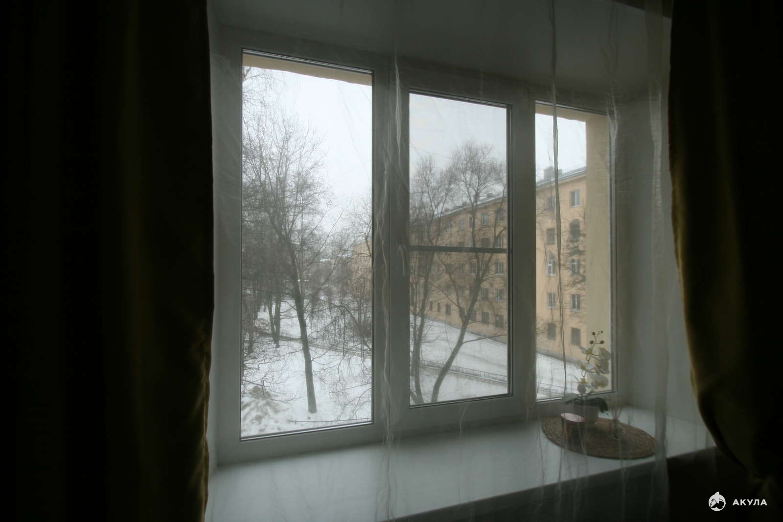 Широкие подоконники, на которых можно сидеть. Хорошие стеклопакеты. В комнате тепло.