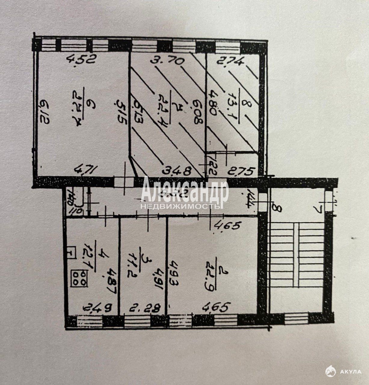 1697936 Вашему вниманию представляем две комнаты (22, 4 м2 и 13, 1м2) в 5 комнатной квартире общей площадью 126, 9 м2,