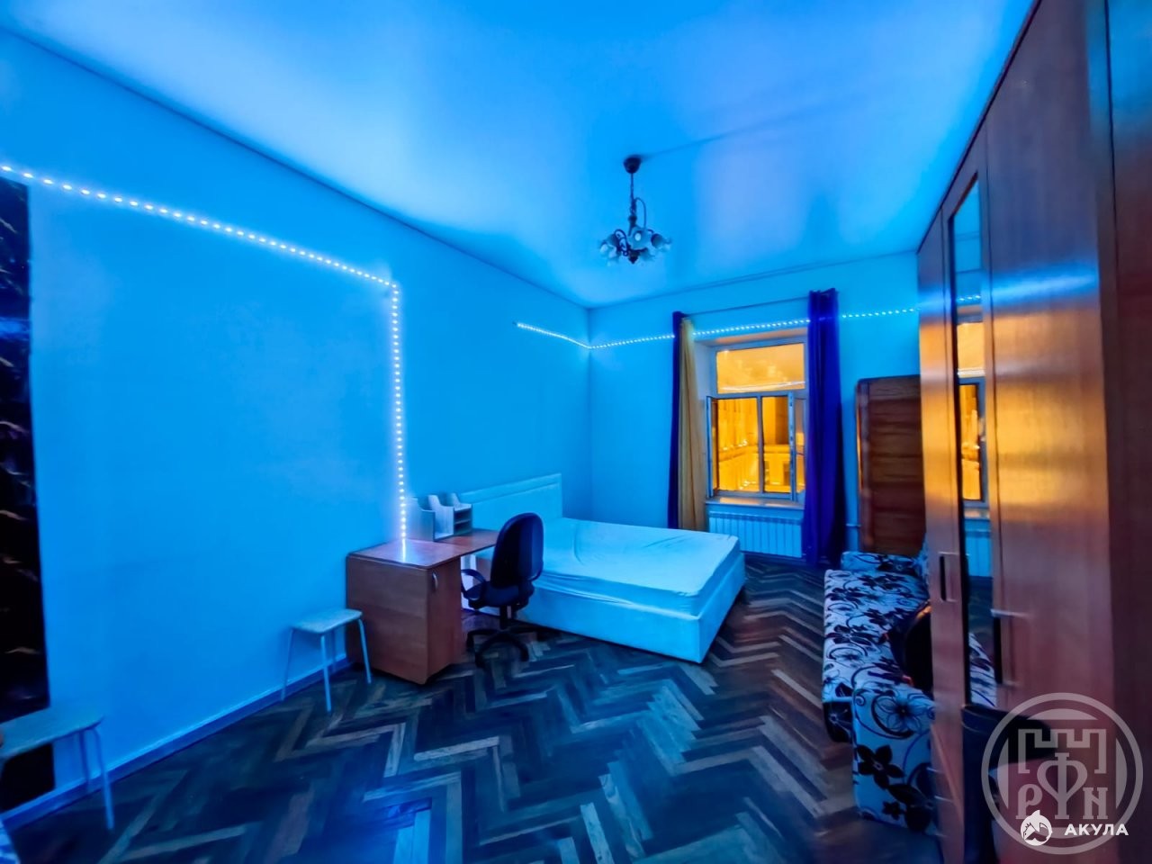 Просторная комната на 4 этаже с видом на улицу Глинки, высокие потолки 3, 3 метра. В комнате сделан свежий косметический ремонт. Вся мебель и техника остается в подарок. Чистые места общего пользования.