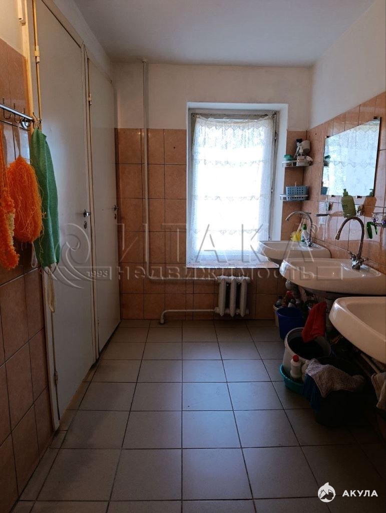Комната не угловая. В квартире 2 блока по 6 комнат в каждом. Квартира ухоженная, чистая. Душ находится в отдельном помещении, что очень удобно. В санузле сделан ремонт, пол и стены выложены плиткой. Комната теплая. Дом кирпичный, 1980 года постройки. Окна пластиковые.