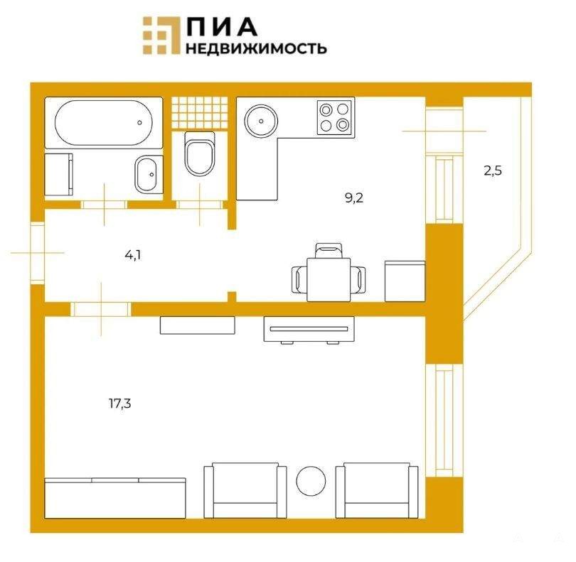 кухня - 9, 2 м плюс лоджия 2, 5 м, комната - 17, 3 м;