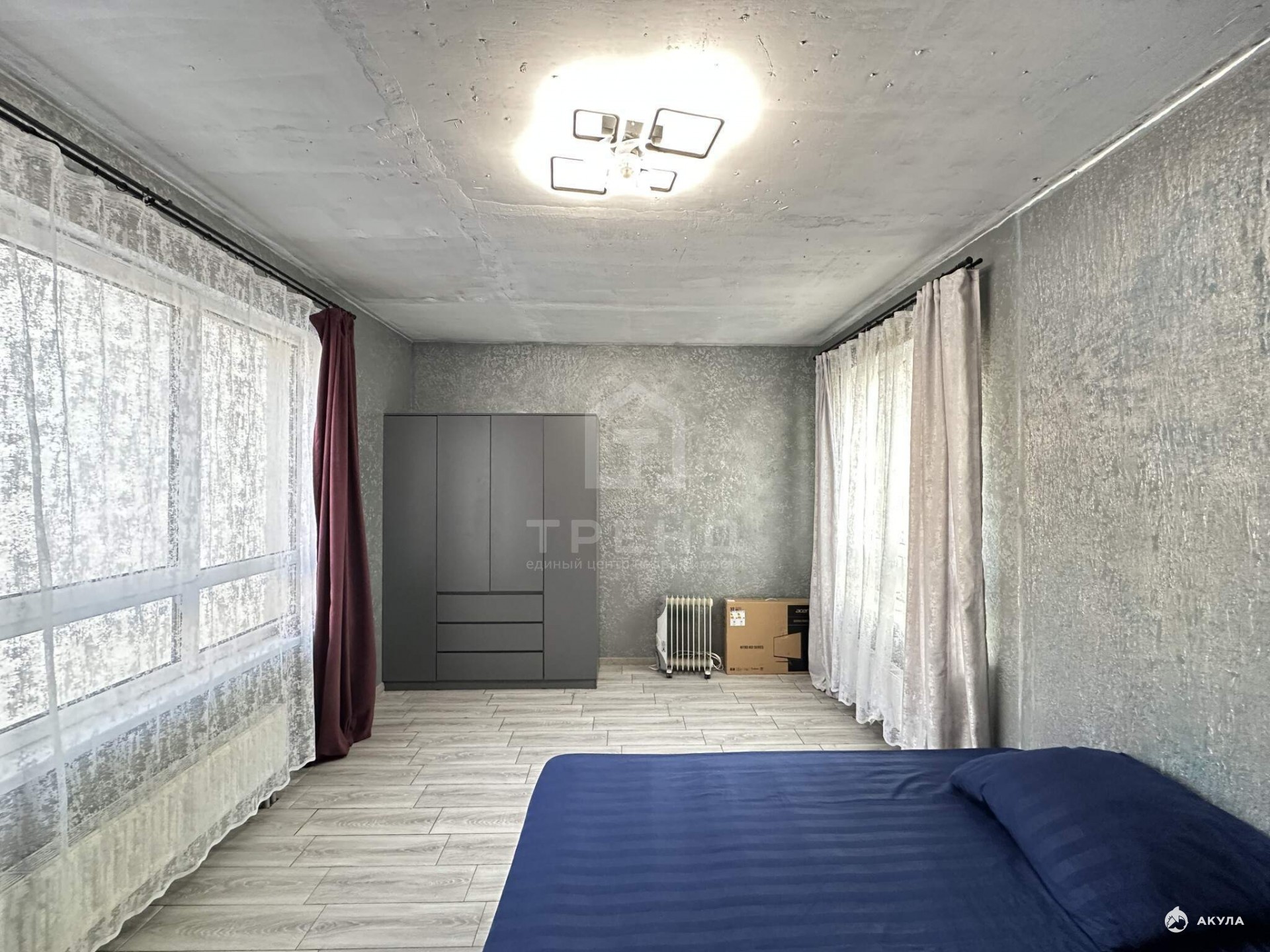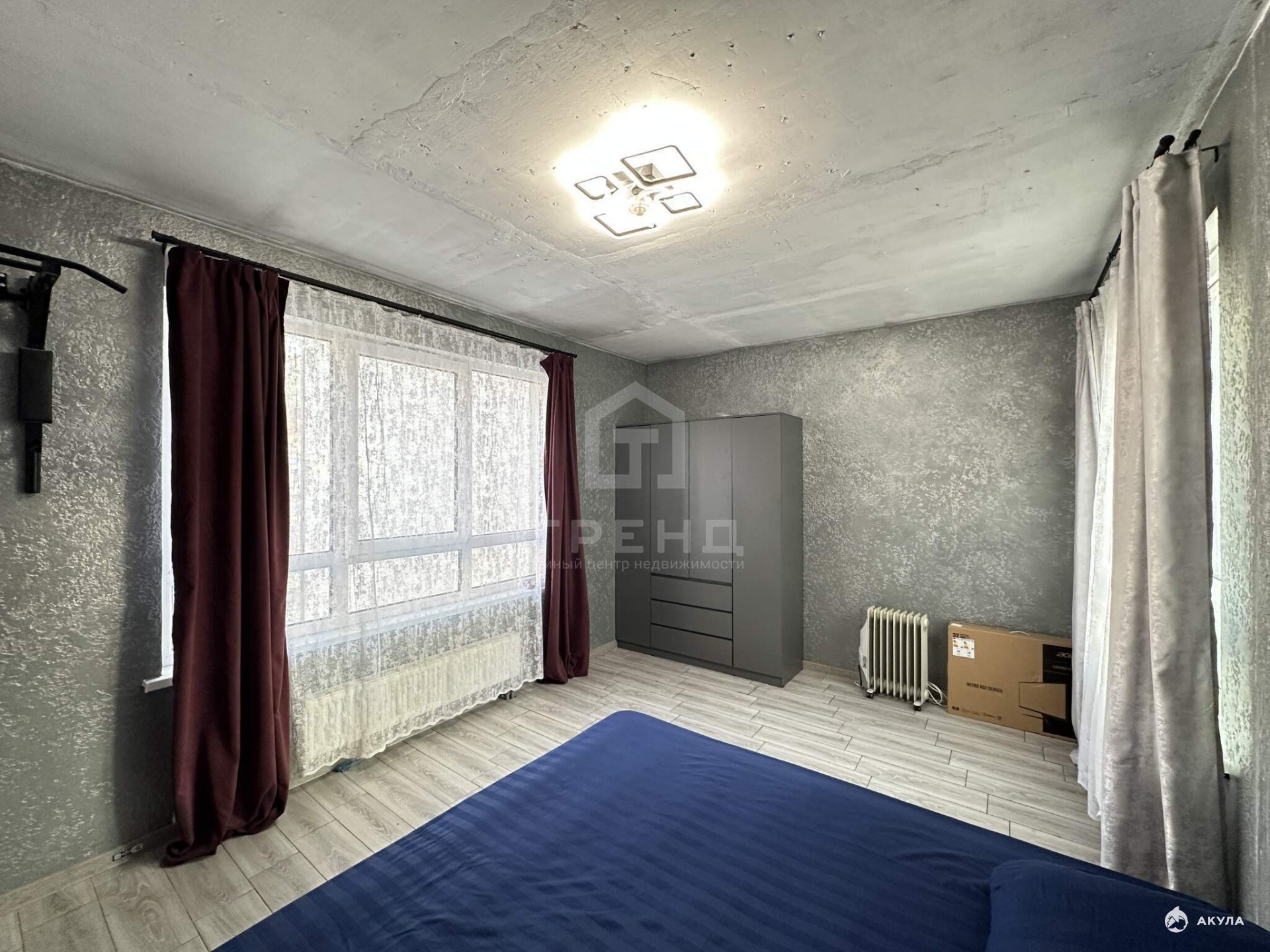 В комнате два окна на разные стороны, достаточно света! Но квартира не угловая, тёплая!