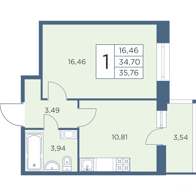 - 16.46 м²