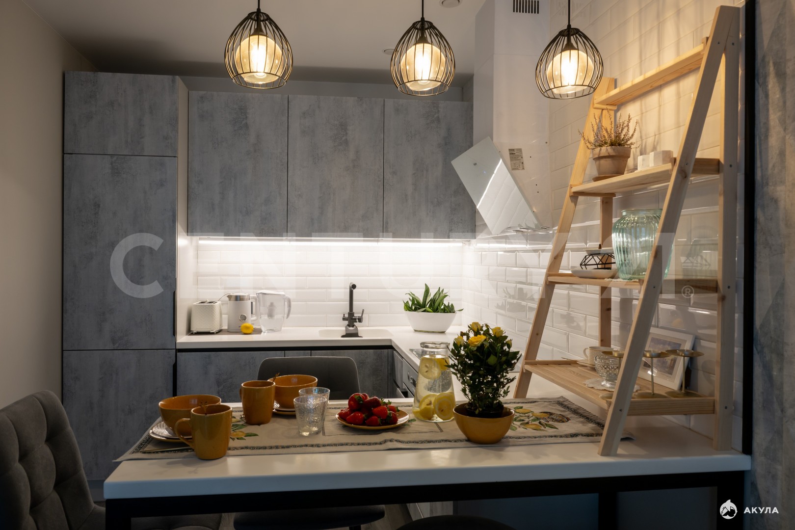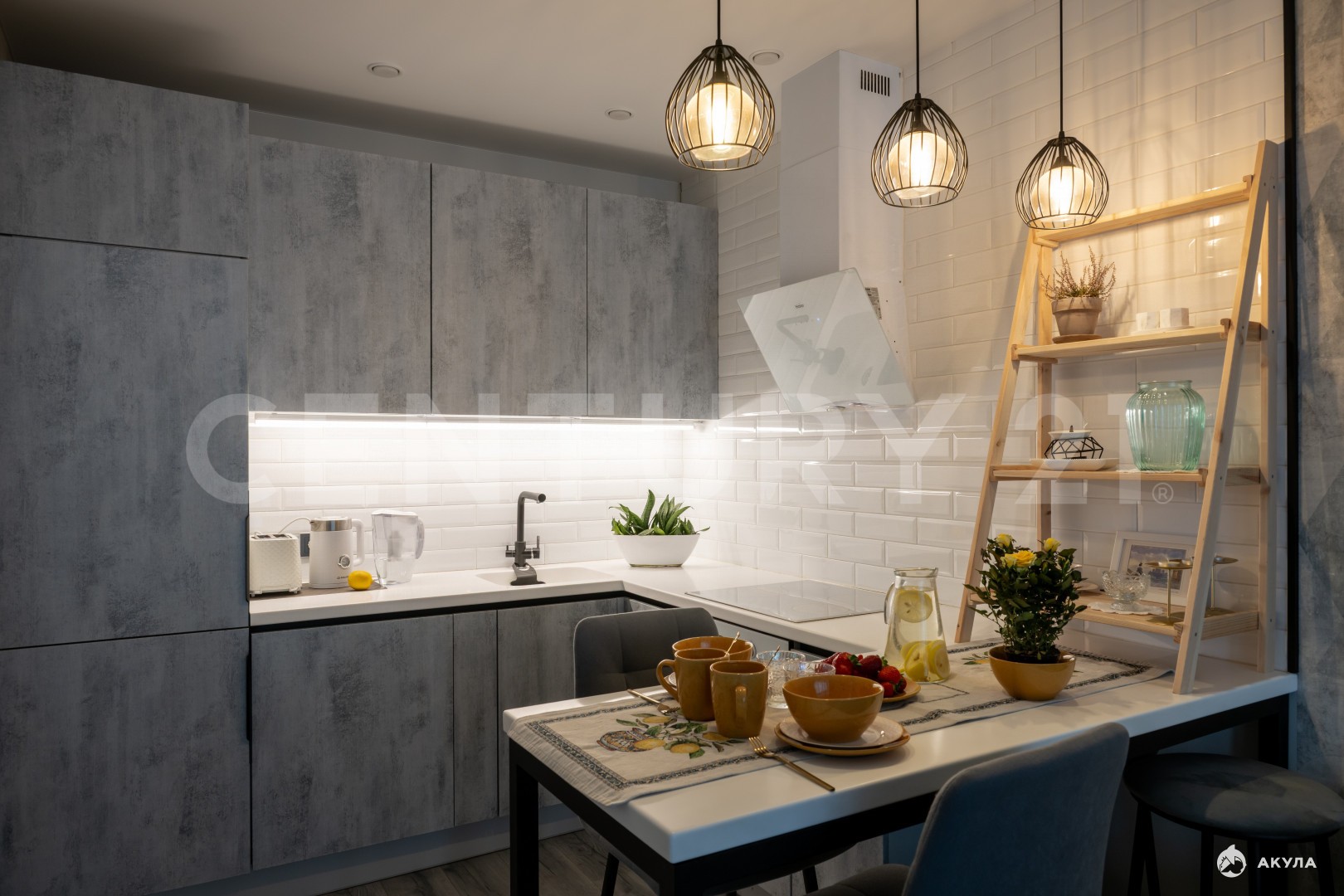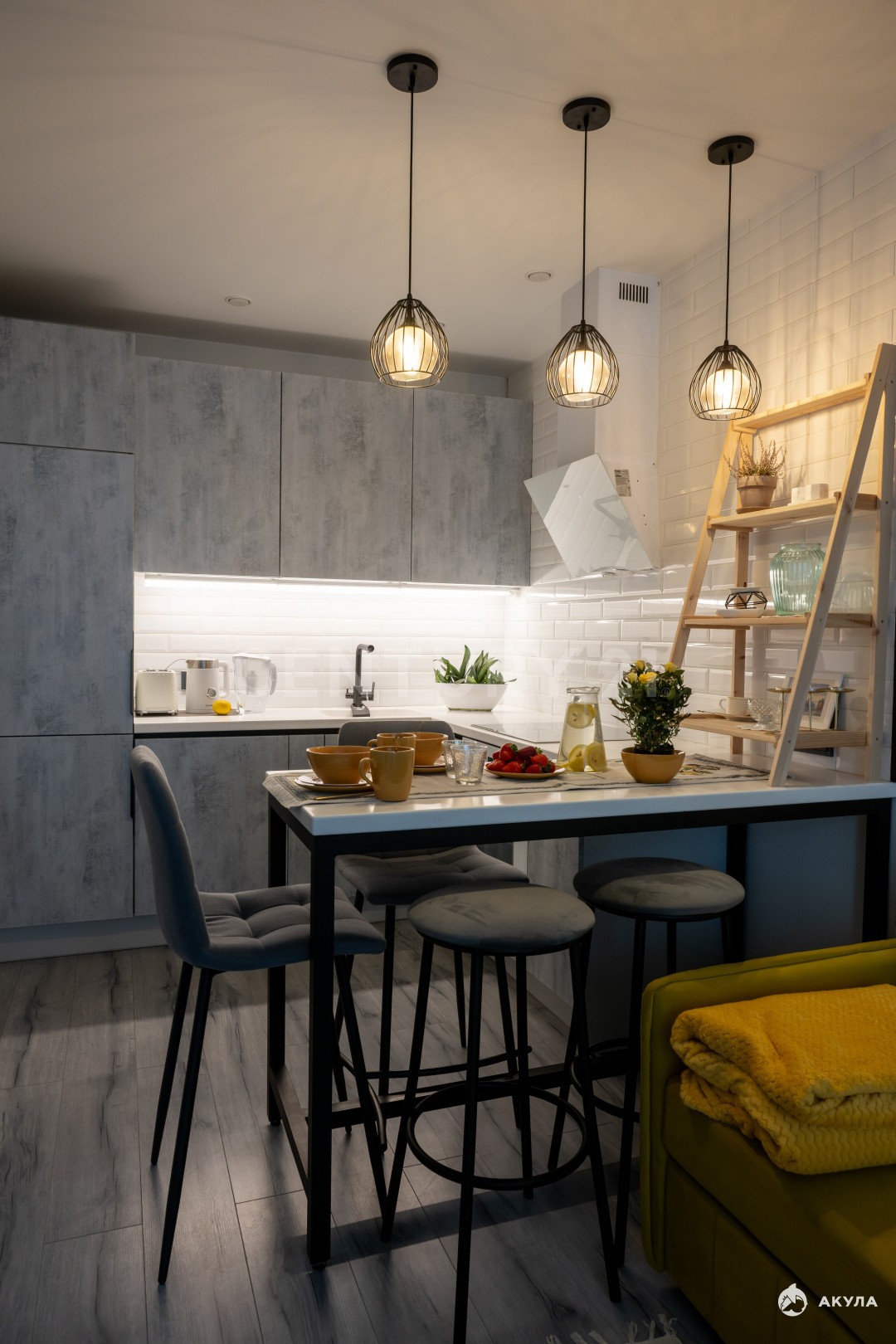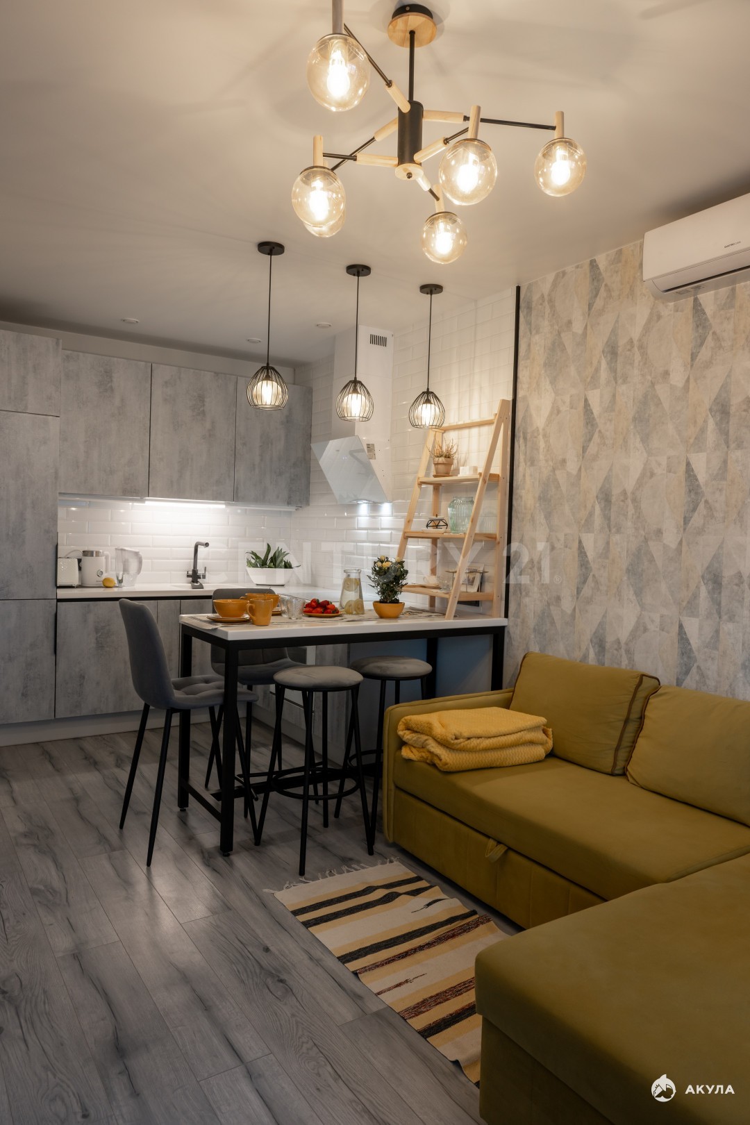 дизайнерская мебель и точечное освещение;