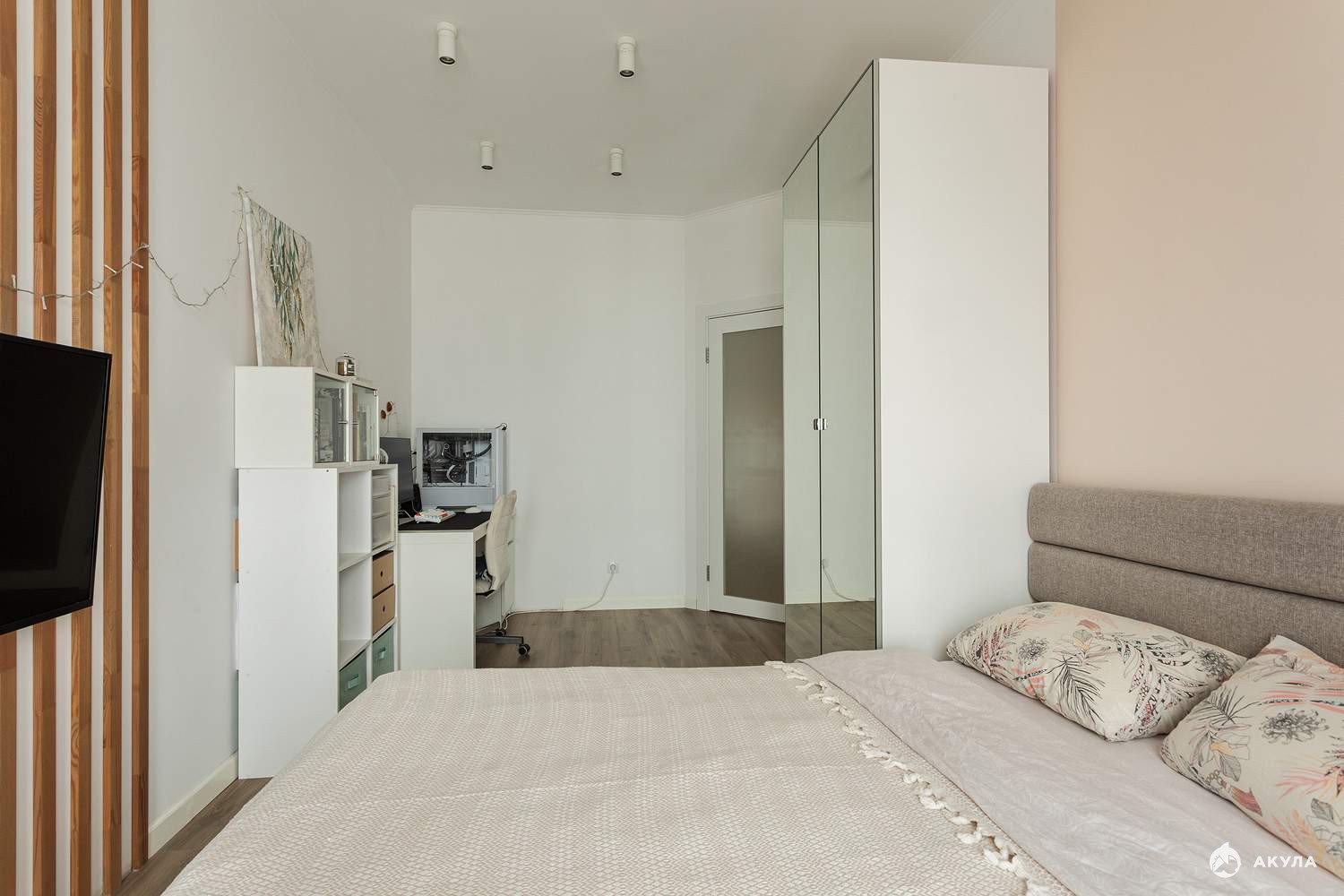- Идеальная планировка: просторная прихожая, зона под гардеробную, комфортная кухня-столовая и большая светлая спальня с выходом на лоджию. Теплые полы в санузле, коридоре и кухне.