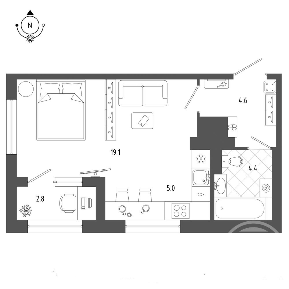 - Комната 19, 1 м2