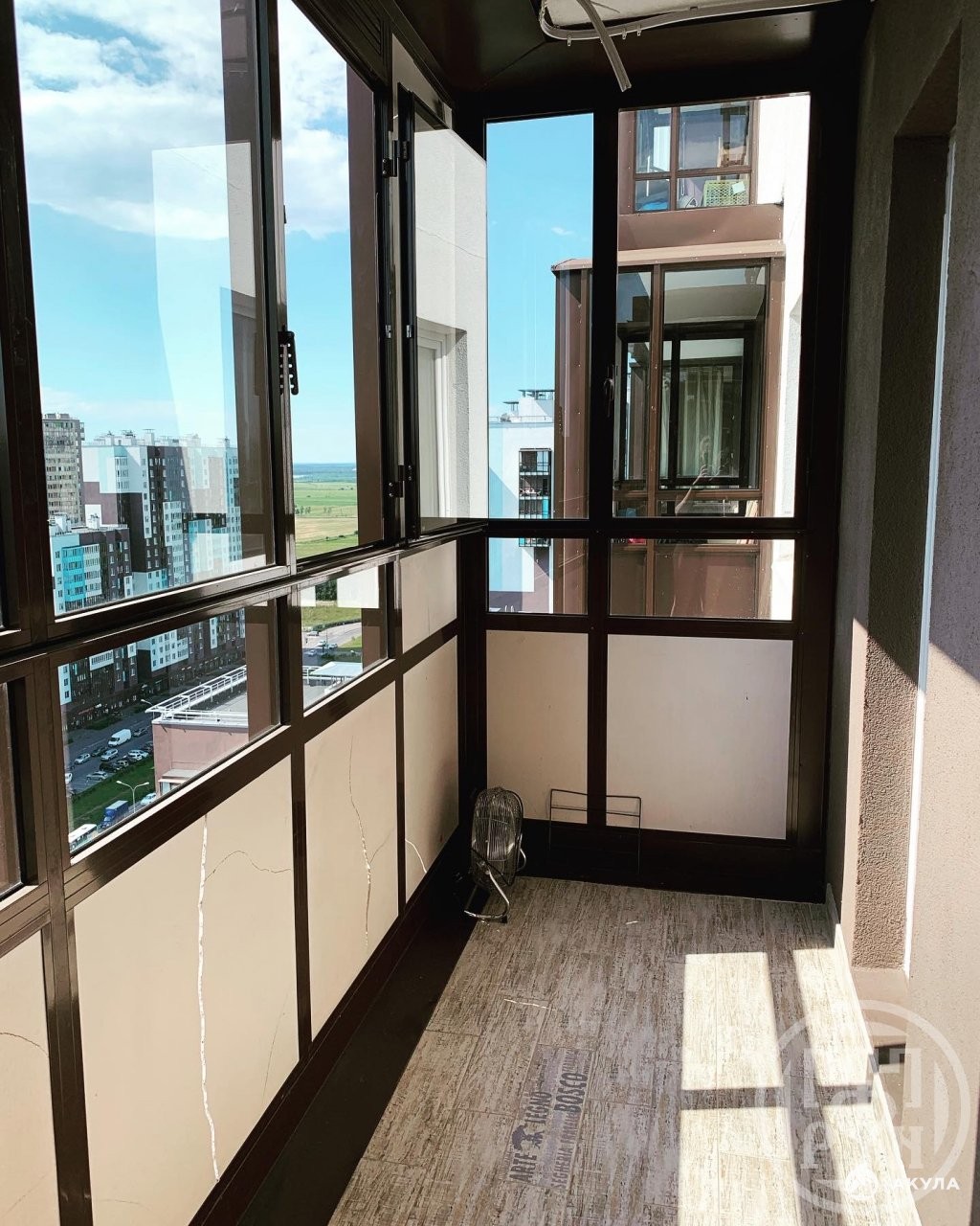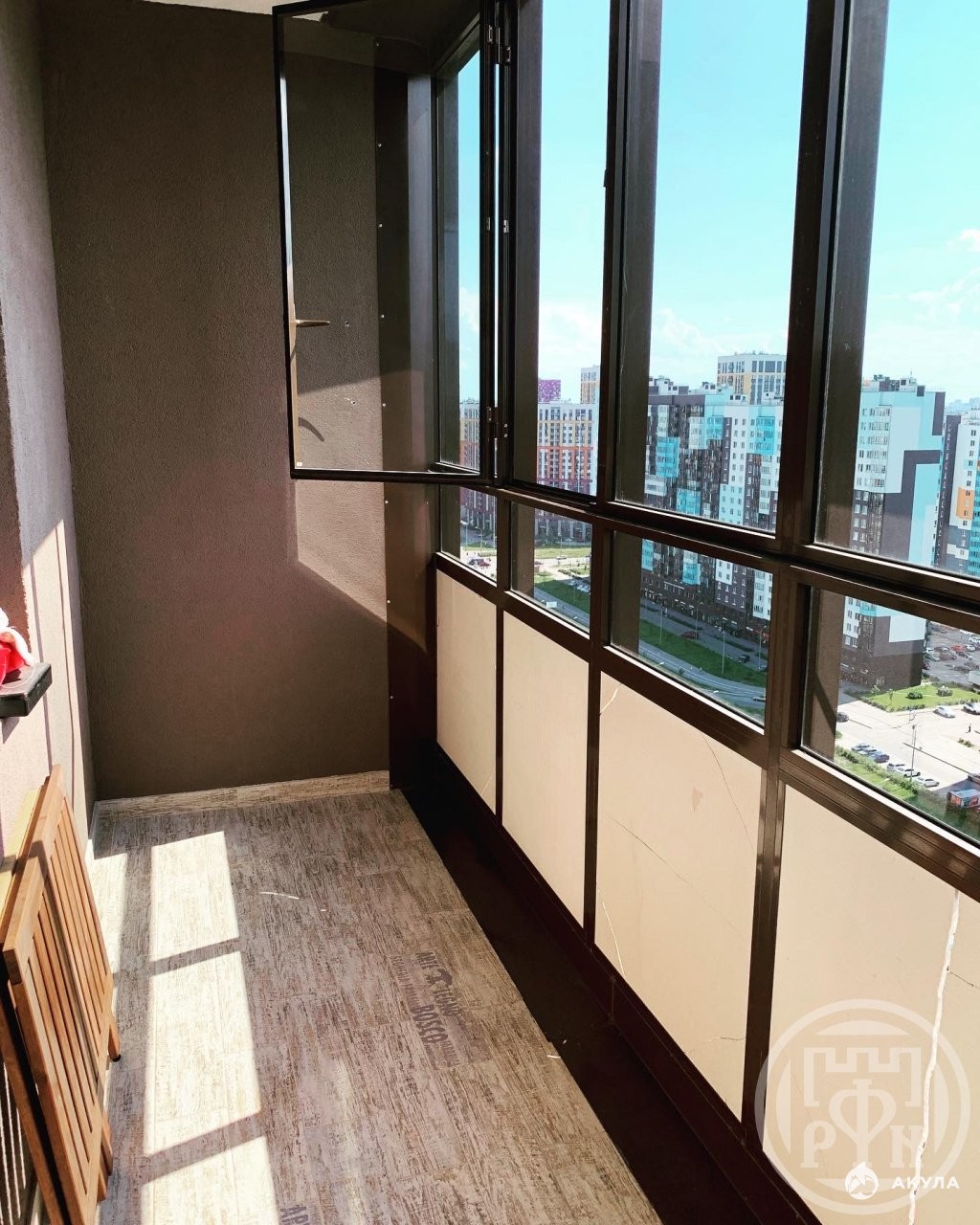 Огромная остекленная лоджия с отделкой на полу, сделает ваше наслаждение закатами еще приятнее!