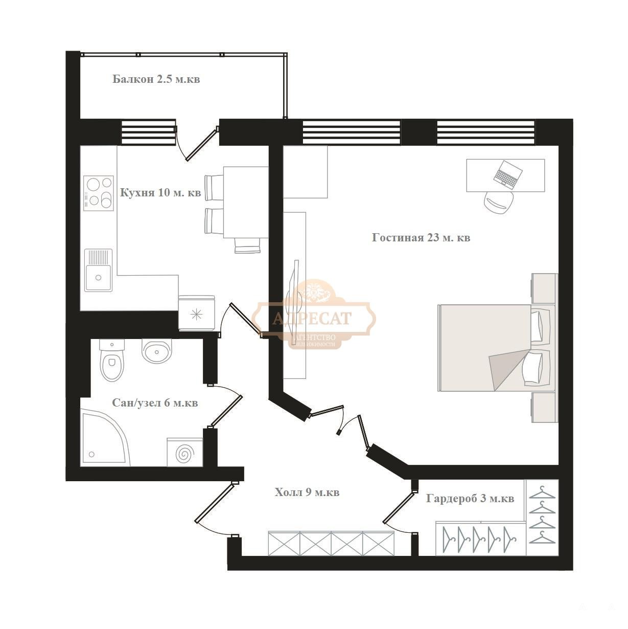 Гостиная площадью 23 м² с двумя окнами предоставляет множество возможностей для расстановки мебели и зонирования пространства по вашему вкусу. Совмещённый санузел площадью 6 м² и вместительный холл дополняют общую картину уюта и комфорта.