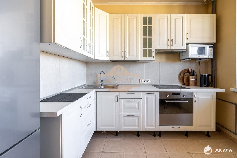 О квартире: квартира светлая и очень просторная, общая площадь — 51 м². Расположена на комфортном 12-м этаже 25-этажного дома. Функциональная планировка включает отдельную гардеробную.