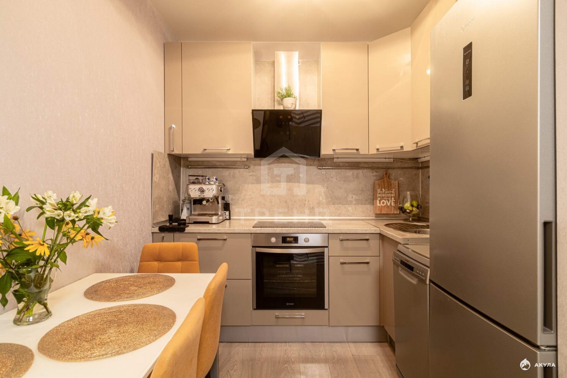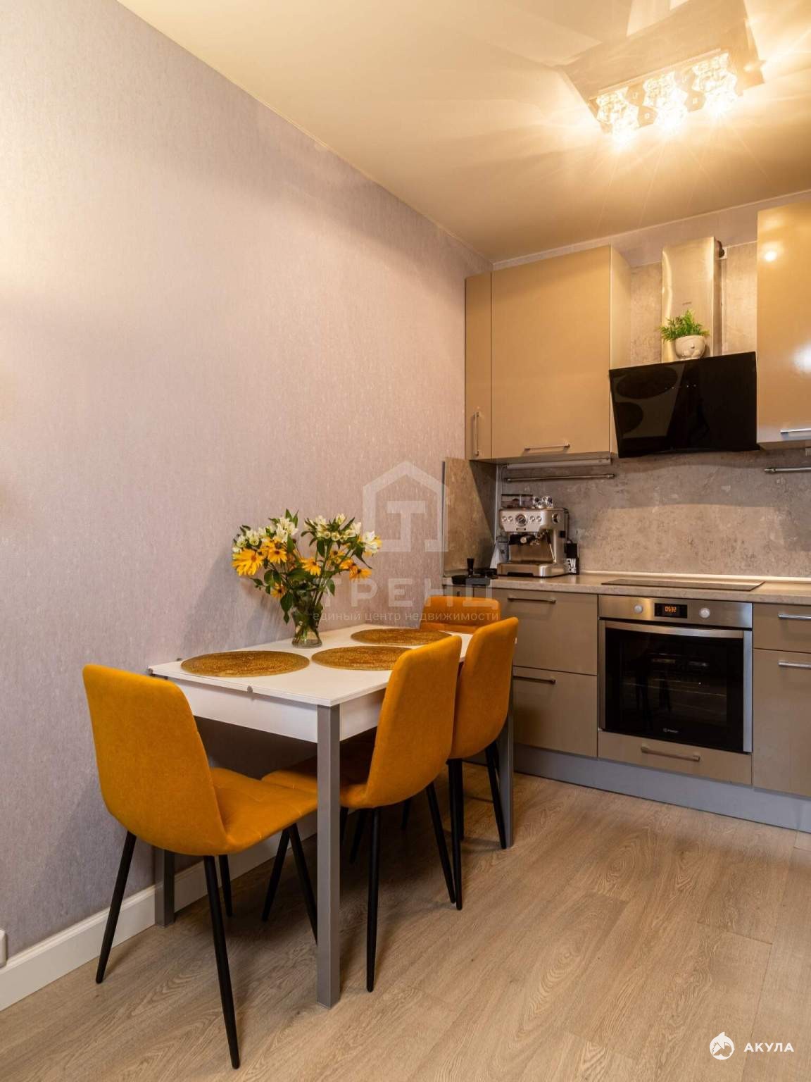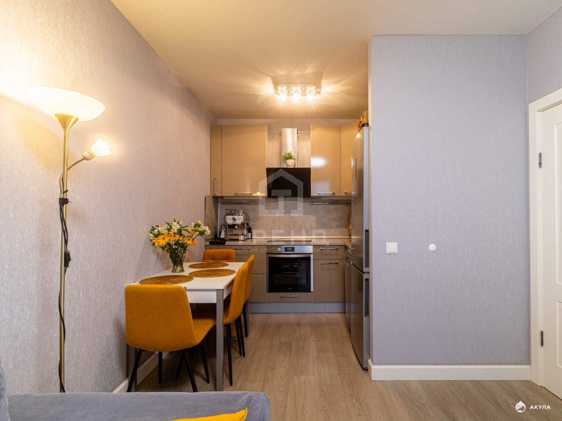 Квартира расположена на 19-м этаже современного монолитного дома, построенного в 2018 году. Благодаря евроремонту и удачной планировке, пространство используется максимально эффективно. Общая площадь квартиры составляет 34, 8 кв. м, жилая - 8, 92 кв. м, а кухня - 17, 35 кв. м. Высота потолков 2, 8 м создаёт ощущение простора и свободы.