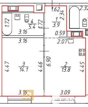 - 14.1 м²