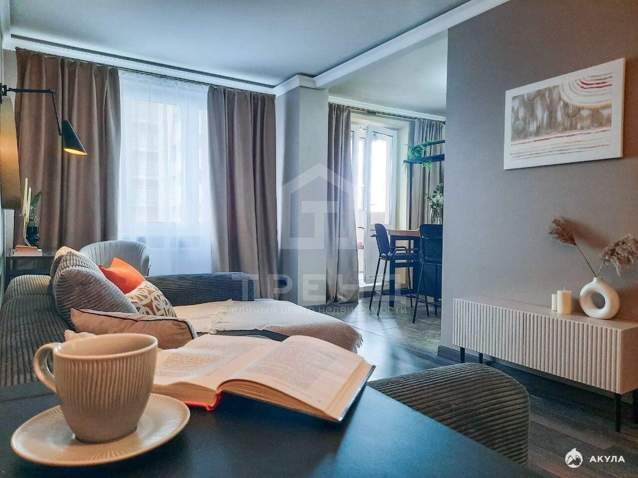 Кухня оснащена надёжной премиальной техникой Korting. В комнате вас ждёт просторный встроенный шкаф и удобный раскладной диван, что идеально и для жизни, и для приема гостей.