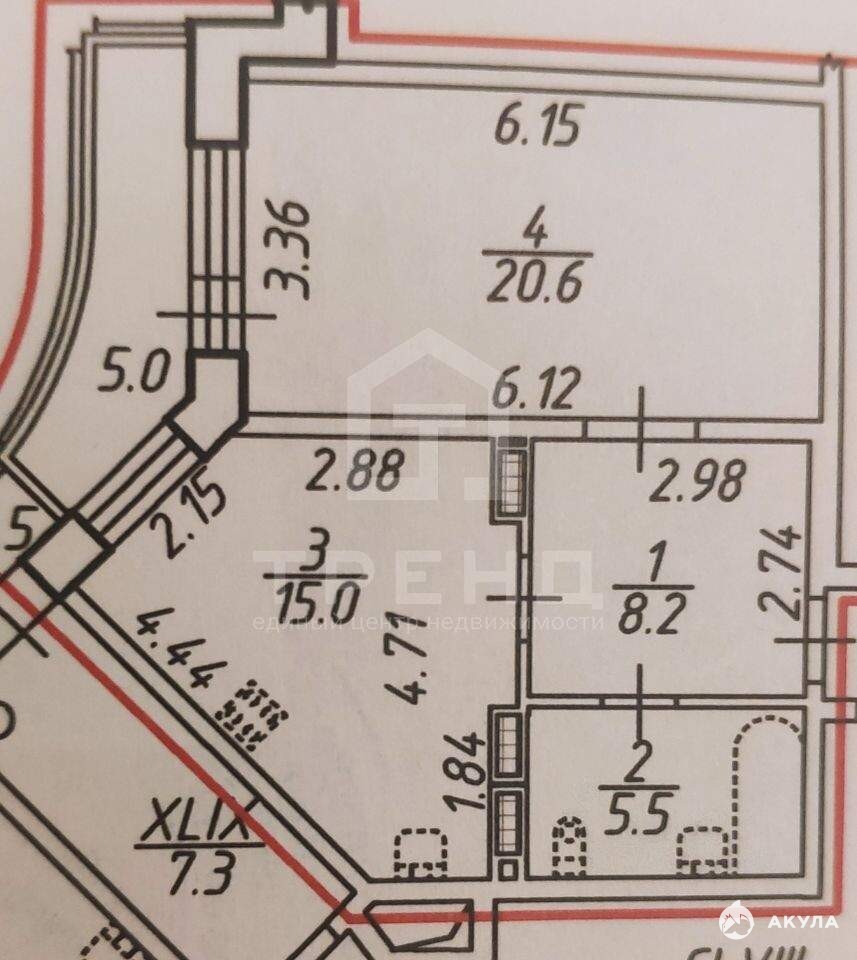 Общая площадь квартиры - 49, 3 кв. м, высота потолков - 2, 8 м. Жилая площадь составляет 20, 6 кв. м, а кухня - 15 кв. м. Евроремонт, сделанный с учётом современных тенденций, позволяет сразу заселиться без дополнительных вложений.