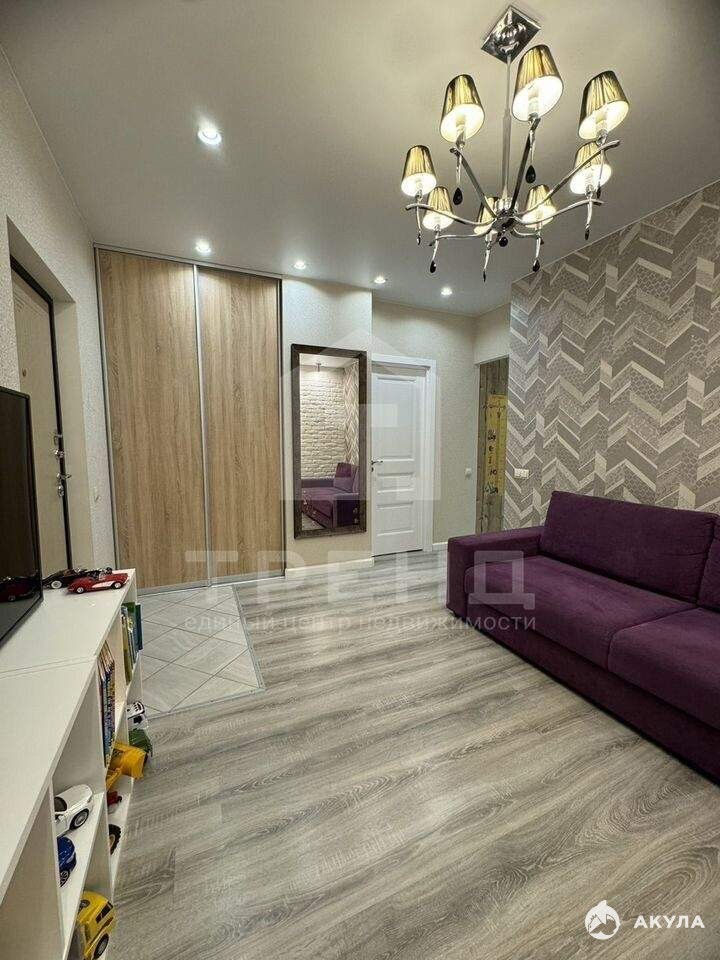 Квартира площадью 43, 2 кв. м на 15-м этаже 16-этажного монолитного дома, построенного в 2017 году. Жилая площадь составляет 27, 5 кв. м, кухня - 9, 8 кв. м. Высокие потолки (3 м) и евроремонт создают ощущение простора и комфорта.