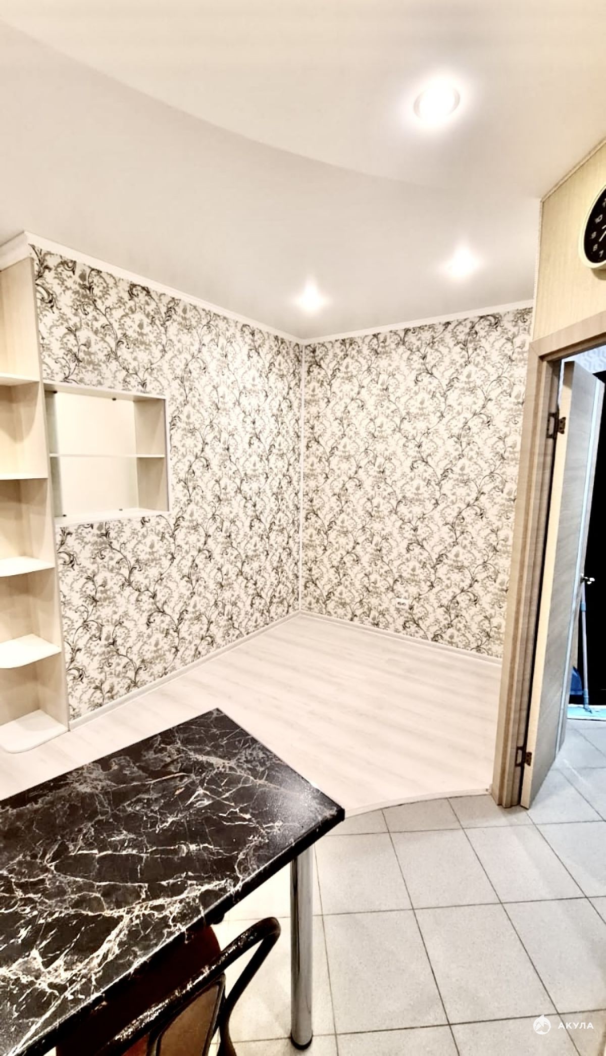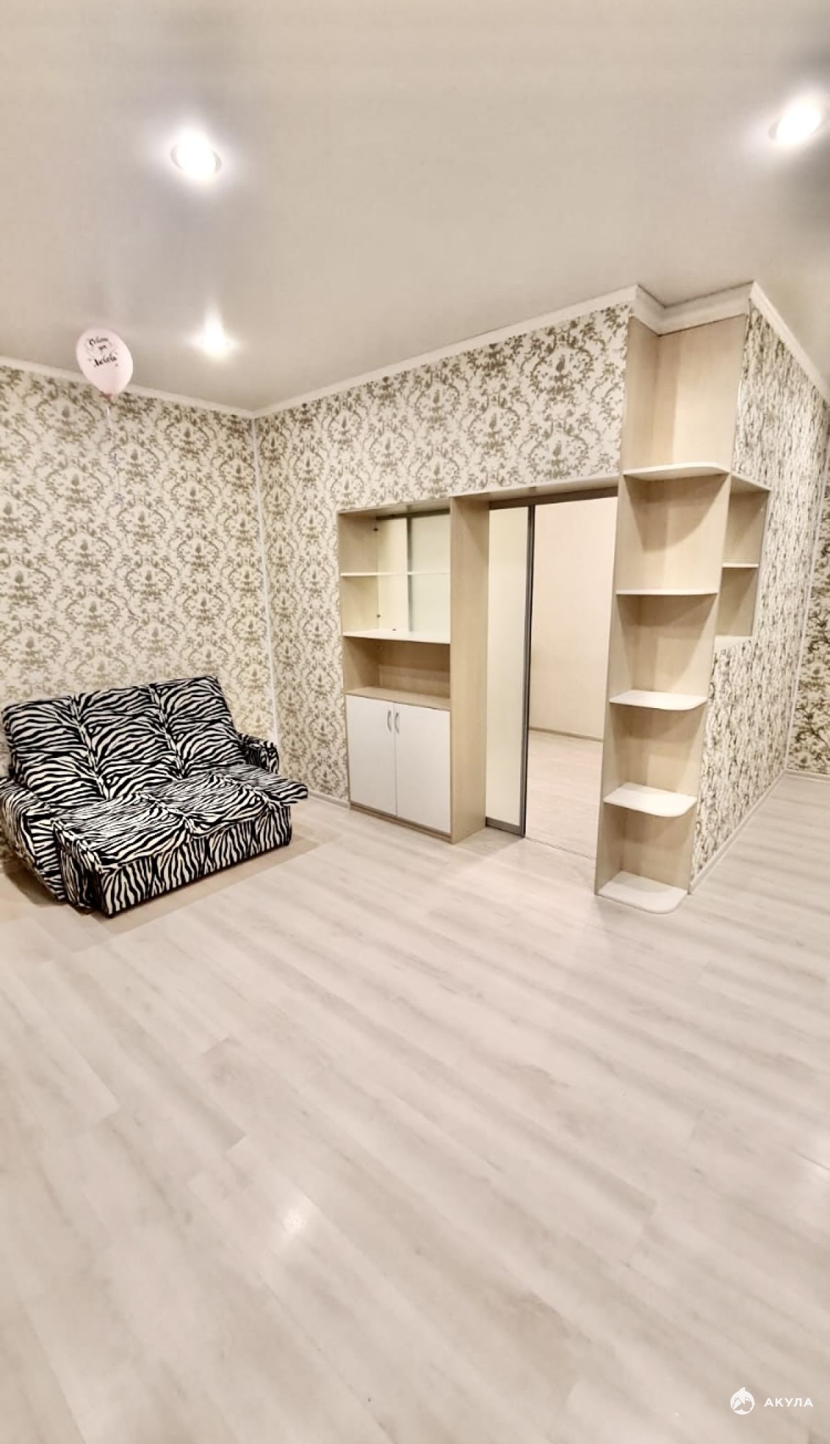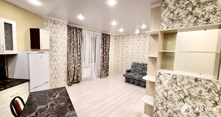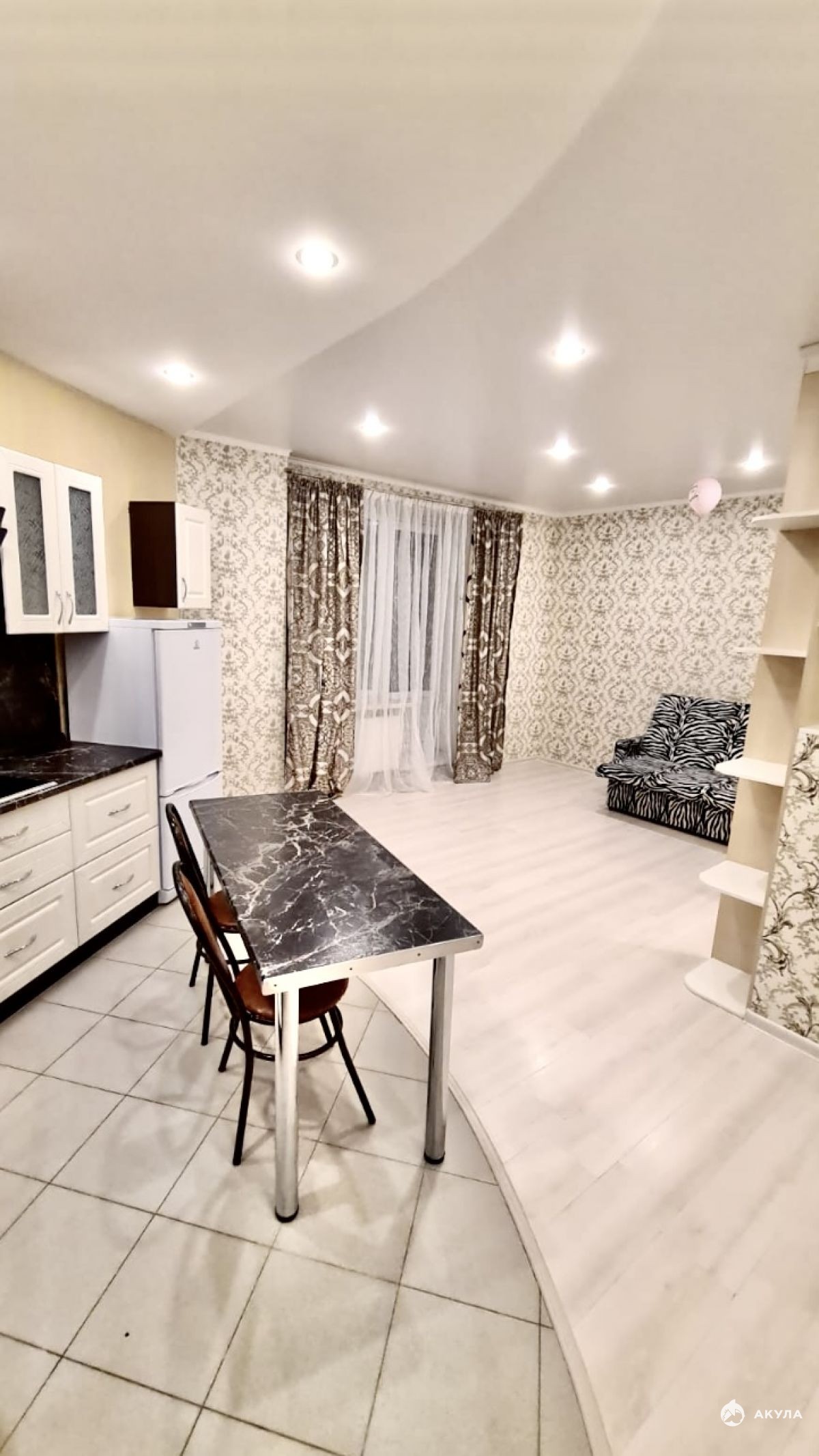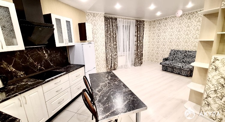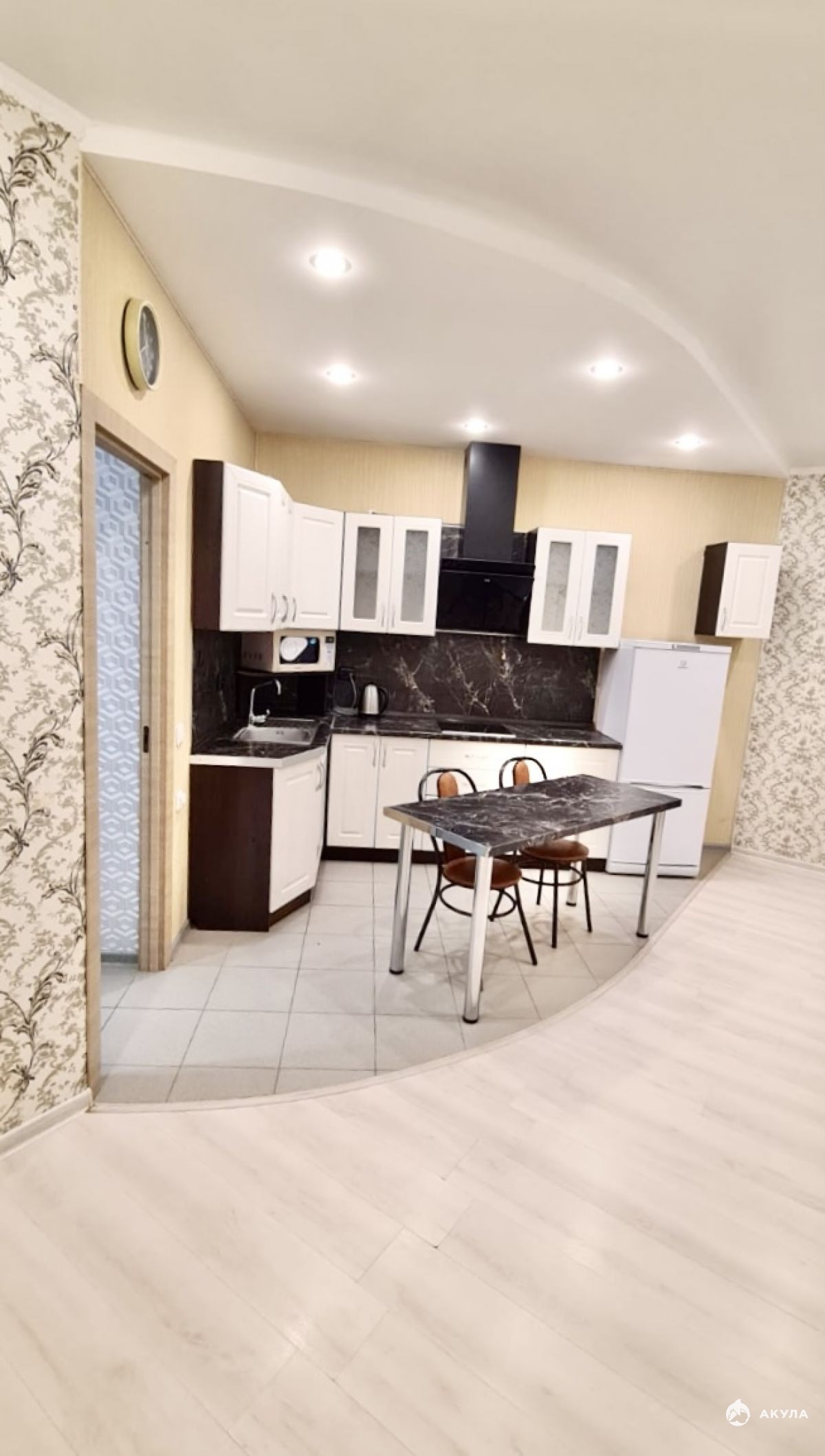 Квартира очень светлая с огромной 4-х метровой, застеклённой лоджией. Комната разделена на две части, одна из которых используется как спальня, а другая как кухня-гостиная. Общая площадь квартиры 43, 2 ка.метра, жилая комната —30 кв.м. Санузел большой, совмещенный. Квартира продается с бытовой техникой (стиральная машина-автомат, двухкамерный холодильник, СВЧ печь, электрическая плита с духовым шкафом, мощная вытяжка). В ванной и в зоне кухни установлена система теплый пол.