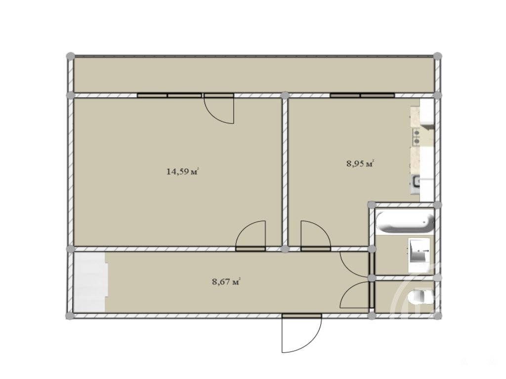 Квартира просторная, комната прямоугольной формы, кухня 10 квадратов, раздельный санузел, длинная, во всю ширину квартиры застеленная лоджия, на окнах стеклопакеты.