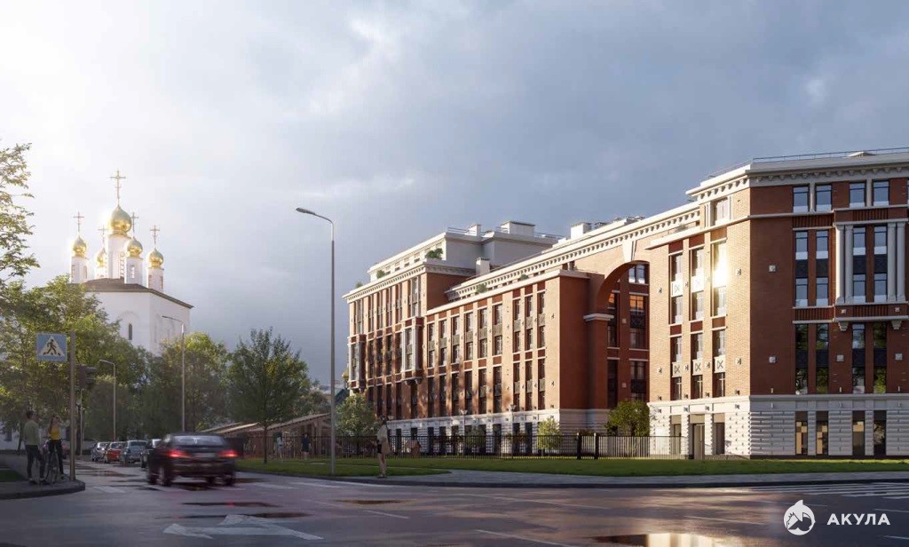 Композиционно комплекс состоит из двух корпусов: разновысотного (6-7-8-9 этажей) на 243 квартиры и небольшого 6-этажного на 20 квартир. Они объединены между собой парадной аркой и формируют закрытый контур внутреннего двора.