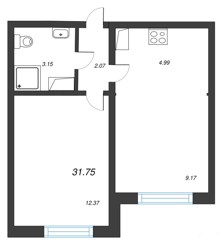 - 12.37 м²