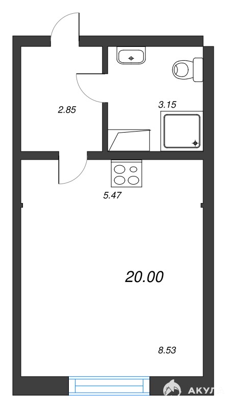 - 8.53 м²
