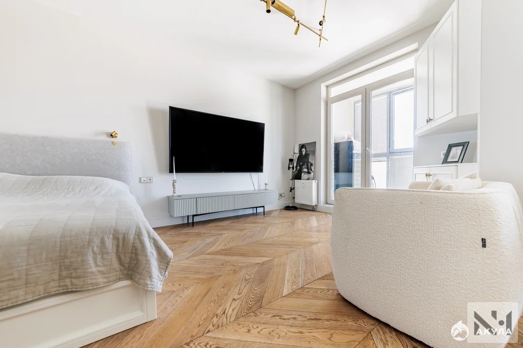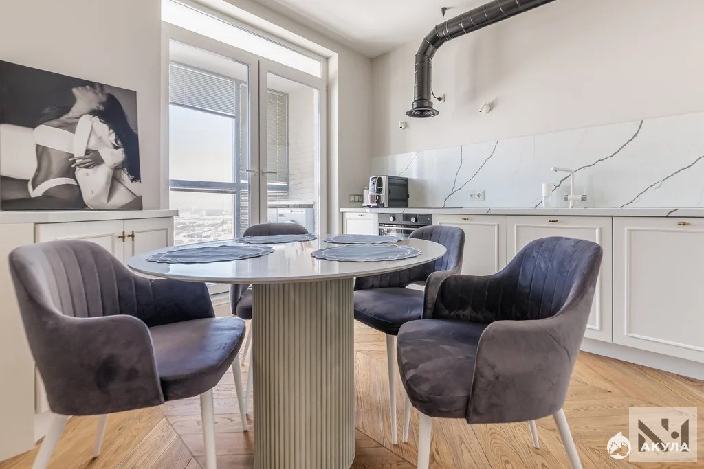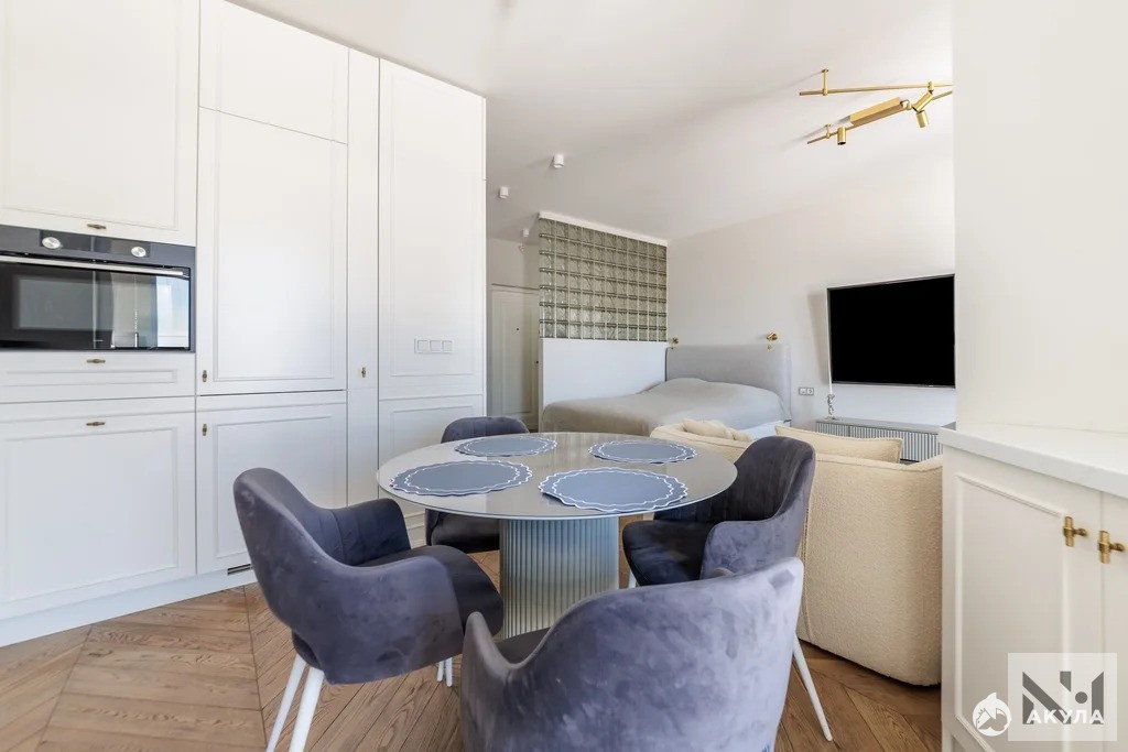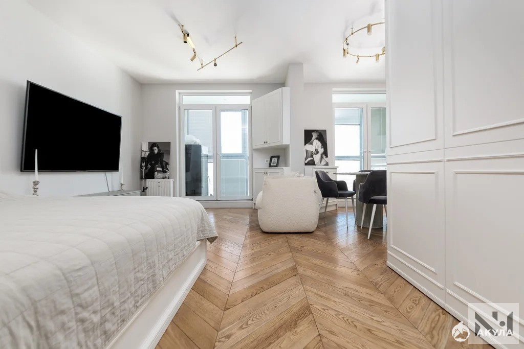 Продается шикарная квартира свободной планировки 46 м2 с уникальным видом на Неву на последнем этаже жилого комплекса на Октябрьской набережной.