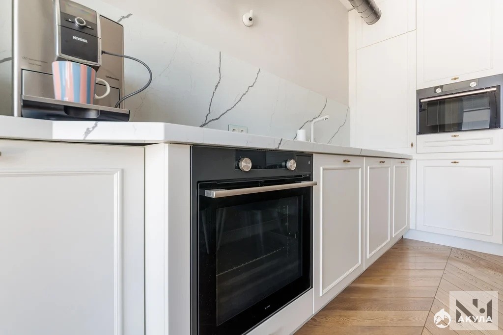 Планировка удобная и эргономичная, все продумано для мелочей. Ремонт выполнен с помощью дорогостоящих материалов по индивидуальному дизайн проекту: на полу паркет, выровнены и окрашены потолки, оклеенные обои на стенах, в санузлах уложена качественная итальянская плитка. Квартира полностью меблирована и оснащена бытовой техникой (холодильник, варочная панель, духовой шкаф, СВЧ-печь, стиральная машина, сушильная машина, кондиционер), которая остается новому владельцу. На окнах установлены качественные двухкамерные пакеты, хорошие радиаторы отопления, прочная металлическая входная дверь.
