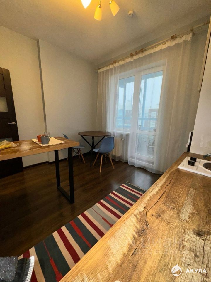 Однокомнатная квартира расположенная на 24 этаже 25 этажного жилого дома. Площадь квартиры составляет 32.2 м2, из которых жилая площадь- 15.5 м2, площадь кухни- 10.1 м2, санузел совмещённый. Вся мебель и техника остаётся новому владельцу.