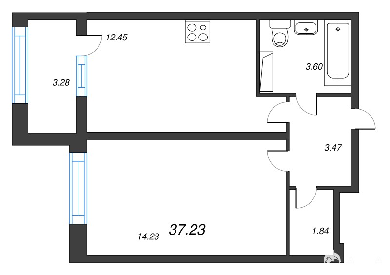 - 12.45 м²