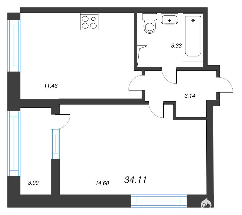- 34 м²