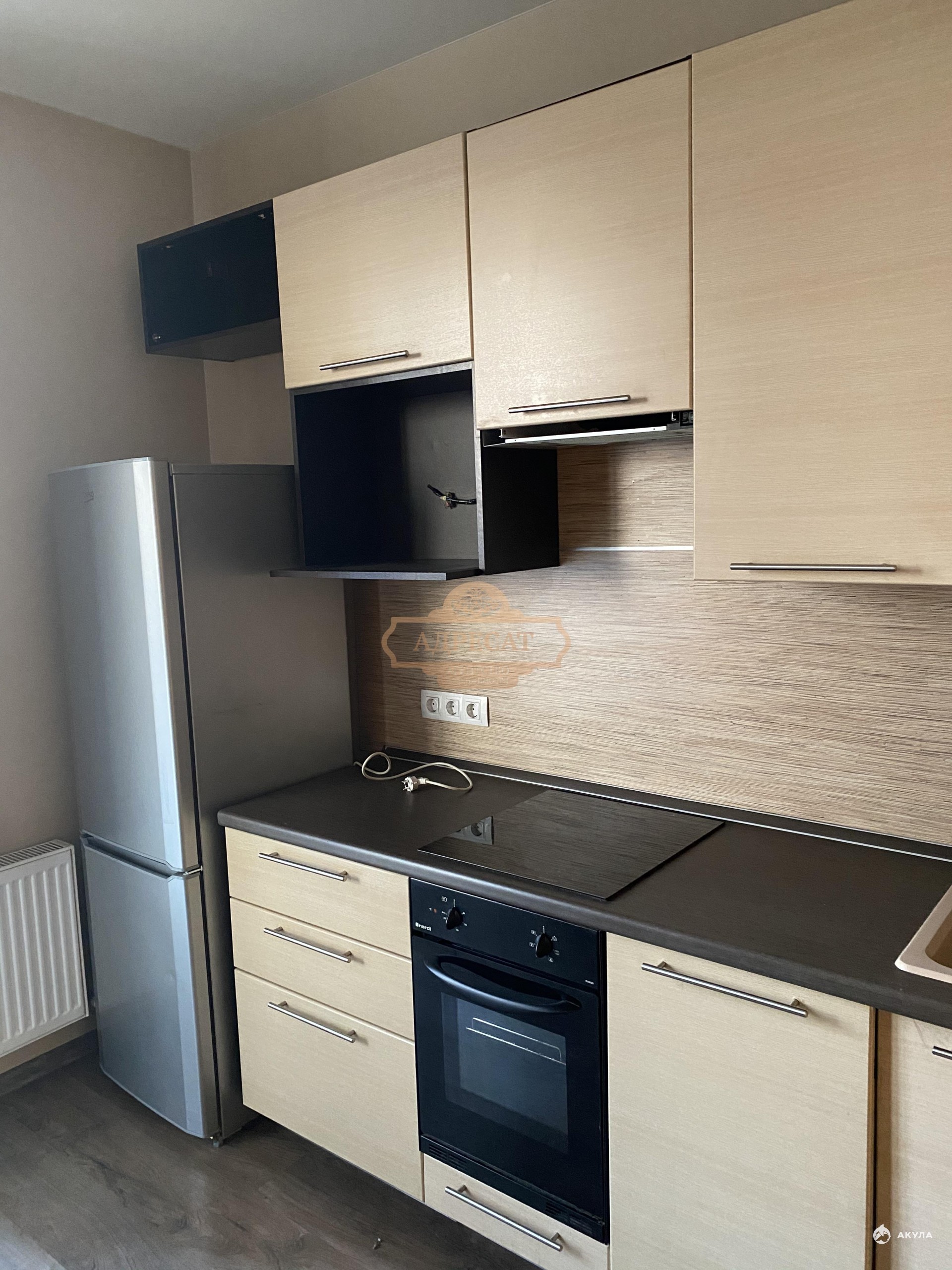 Кухня оборудована необходимой техникой, включая холодильник и посудомоечную машину. Ванная комната оснащена душевой кабиной и стиральной машиной.
