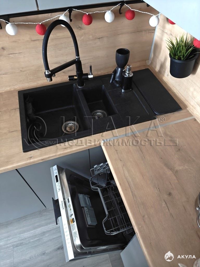 Белоснежные стены, высокие потолки, кухня-гостиная зонирована и разделена на рабочую и обеденную, с местом отдыха. Здесь любая хозяйка почувствует себя уверенно и комфортно. Остается кухонный гарнитур, сделанный на заказ по индивидуальному проекту, встроенная техника. Дополнительный кран с фильтрами очистки, для питьевой воды. Остальная мебель, может остаться по вашему желанию тоже, по согласованию с собственником.