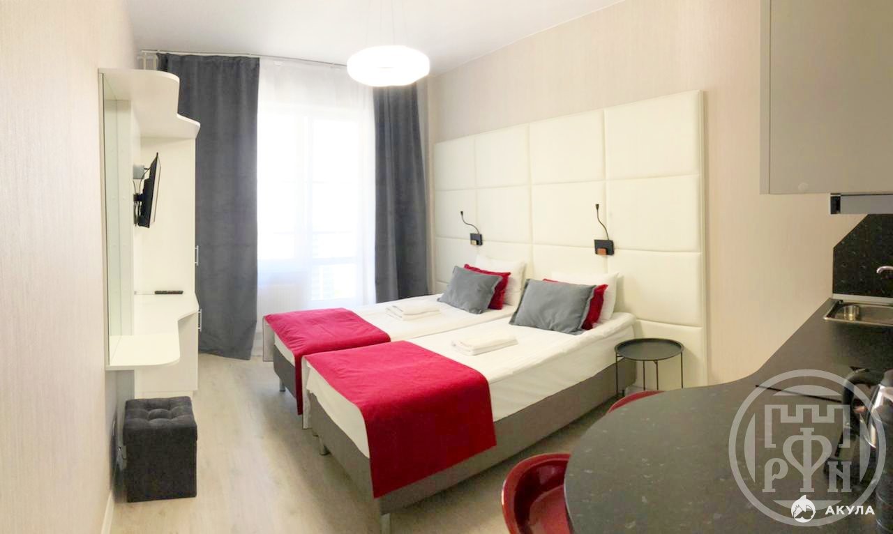 Просторная эргономичная студия с большим застекленным балконом. Полностью укомплектована: кухонный гарнитур, мягкая мебель, вся необходимая техника. Все в отличном состоянии, качественный ремонт.