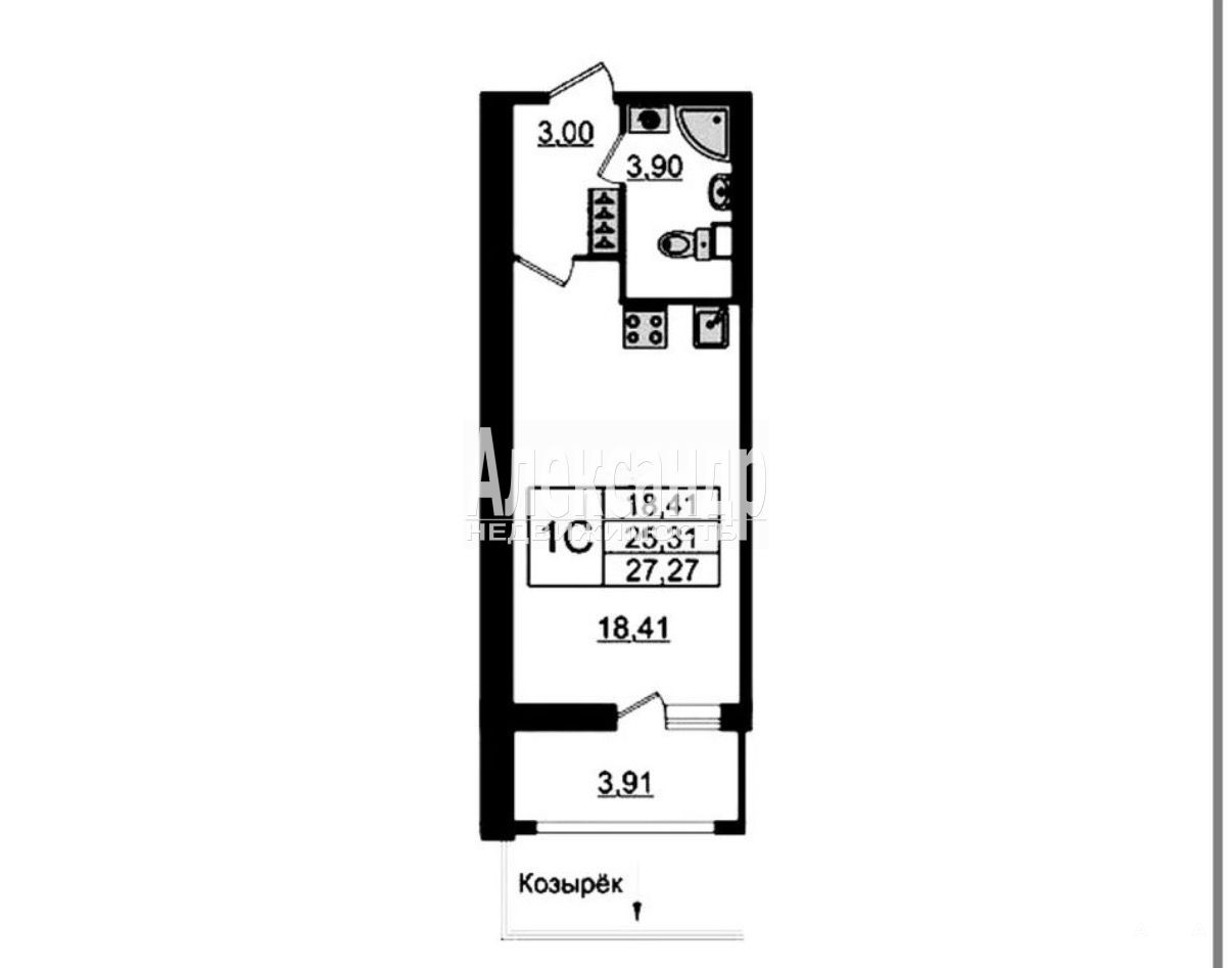 1706267 В продаже студия на последнем этаже в современном жилом комплексе на берегу Невы. Квартира правильной квадратной формы, высота потолков 2, 77 метра, увеличенные окна.