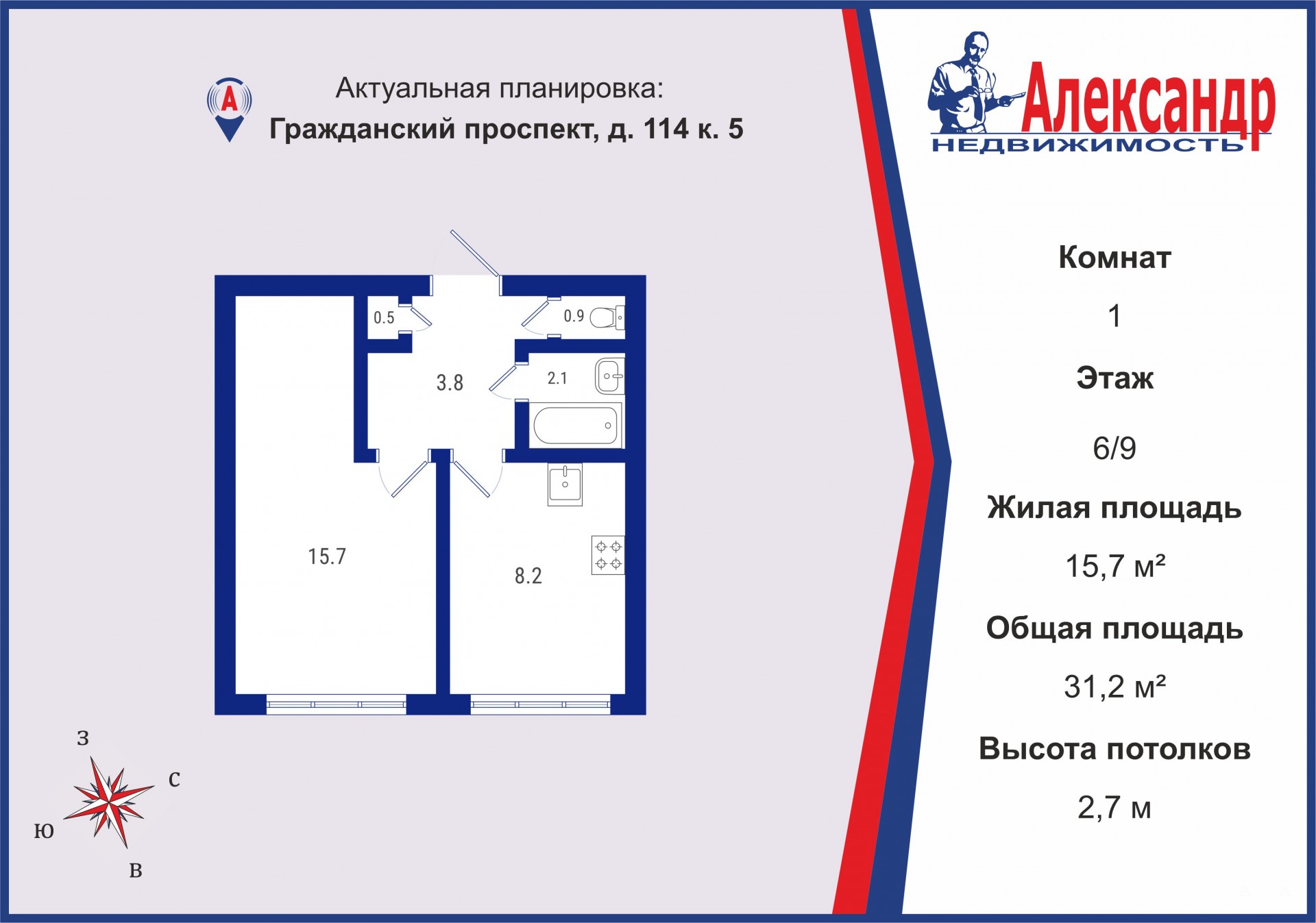 1701431 Продается уютная 1-комнатная квартира на 6-ом этаже 9-ти этажного дома. Комфортная 606 серия. Спокойный, тихий район в 4 минутах ходьбы от м. Гражданский проспект.